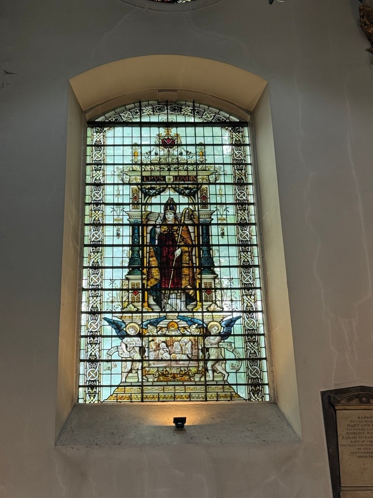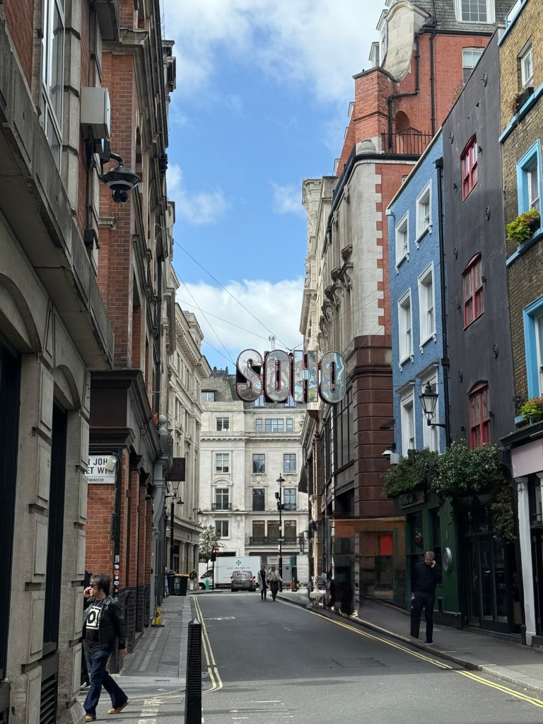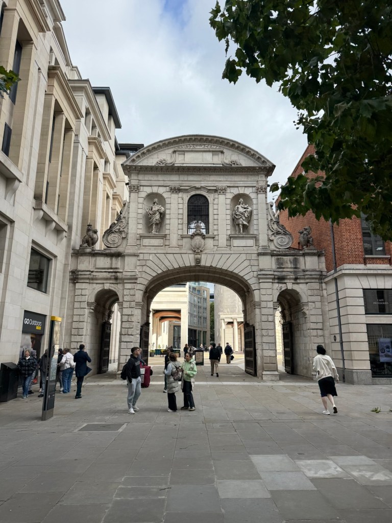 On the flight between Doha and Heathrow, we headed upstairs on the A380 to our seats… unfortunately not to Business Class but a girl can dream!At the lovely Lord John Russell pub on the corner near our hotelThe bagel shop in Brick Lane this morningWith DeniseTasty looking vegetarian optionsMy delicious smoked salmon and cream cheese bagelDown to Liverpool Street tube station with the Gherkin in the distance The Old Bailey (Central Criminal Court)The neo-Baroque building features elaborate carvings and is topped by a 12ft gold-leaf statue of Lady Justice, holding a sword and the scales of justice. Notably, this statue is not blindfolded, distinguishing it from many other depictions of Justice (thanks Google)One of the beautiful stained glass windows in the 17th century, Christopher Wren designed, Church of St.Martin-within-Ludgate, just around the corner from St Paul’sSt Paul’s CathedralTemple Bar, a 350 year old gateway to the City of London, designed by Sir Christopher Wren. It formerly stood in Fleet Street, and is the last surviving gateway to the City of LondonThe first quirky thing for the trip… The Panyer Boy, a mysterious carving from 17th century London seemingly depicting a young boy sitting on a bread basket although no one knows it’s origins, or exactly what it is supposed to be depicting. Although it has been moved a number of times as buildings are demolished he has apparently always been in the vicinity of Panyer Alley, a street named after the boys who sold bread from pannier baskets (Thanks Atlas Obscurer). Onto Liberty London (aka Liberty’s), founded in 1875 and renowned for supporting avante garde fashions and homewares. We’ve heard it referred to on British shows like Antiques Roadshow regularly over the years, so thought we’d visit.Inside one of the four main atriumsAnother atrium with art installationOut onto nearby Carnaby StreetThen into SohoAfter lunch it was off to the Gloucester Road tube station to check out this installation (‘Pond Life: Albertopolis and the Lily’) on the disused Platform 4 as part of Art on the Underground program. One of the five discs, each 4 metres in diameterOut around the Gloucester Road area… And again Coffee and tart at a Paul cafe (London chain of patisseries)