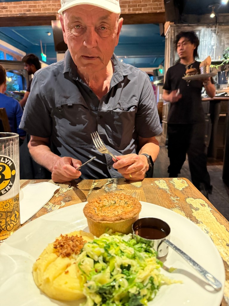 My avo & mango salad with grilled chicken… yumThey mucked up his order… He’s still waiting…30mins later, after I’m finished… his Pale Ale Pie arrives (they didn’t charge us for it). As we walked home, we took a short deviation to see if the Generator, a pub where Beth (my daughter) worked whilst living in London, is still there… I hadn’t realised that it is literally just around the corner from where we’ve stayed for the past two visits.