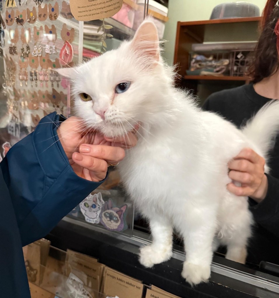 Yoghurt the cat, one of the smoochers at a cat cafe. Lynn & I intend to return for more lovin’. Note his eyes… one blue, one hazel Dinner at Pinocchios