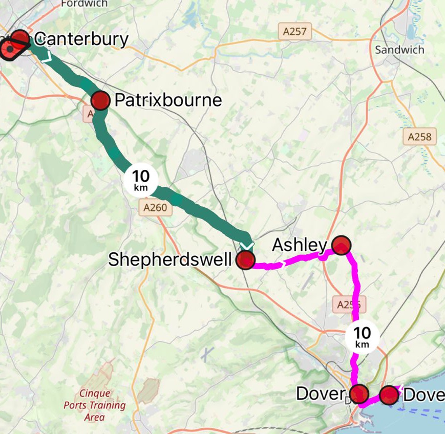 Stage 1 Wednesday 17 Sept: Canterbury to Shepherdswell (17km/10.6m)