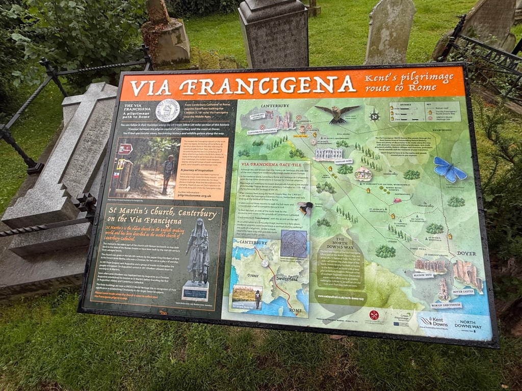 Our hotel, The Castle House Hotel, home for four nights. First steps… heading offOutside the Cathedral shop. The crowds attending university graduations in the Cathedral made it too difficult to start at the Cathedral. The first Via Francigena sign… 1800km to go. It’s actually about 2000km and fortunately we’ve already done the last 1100!