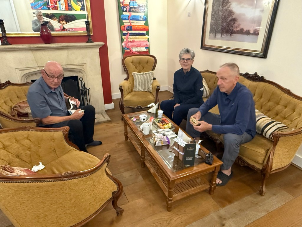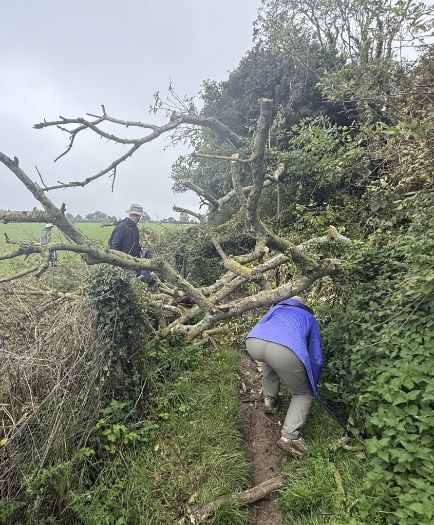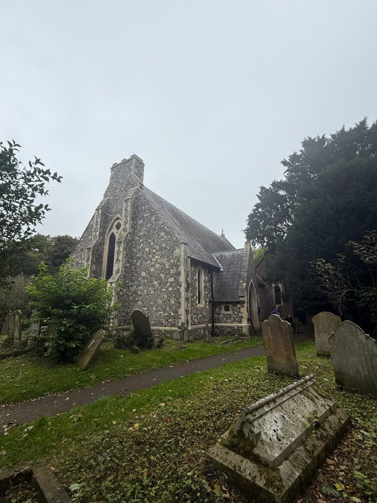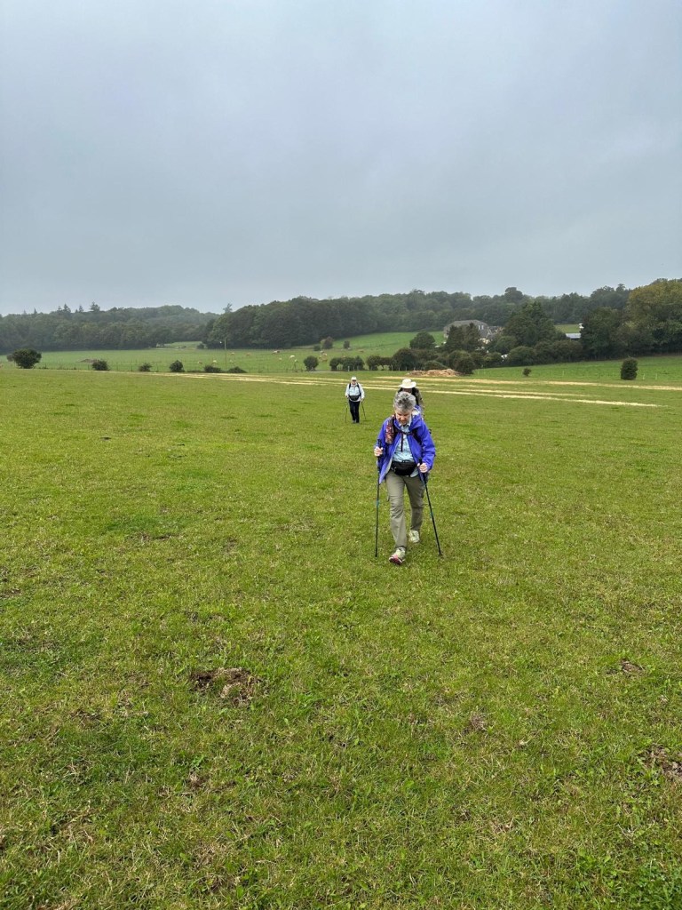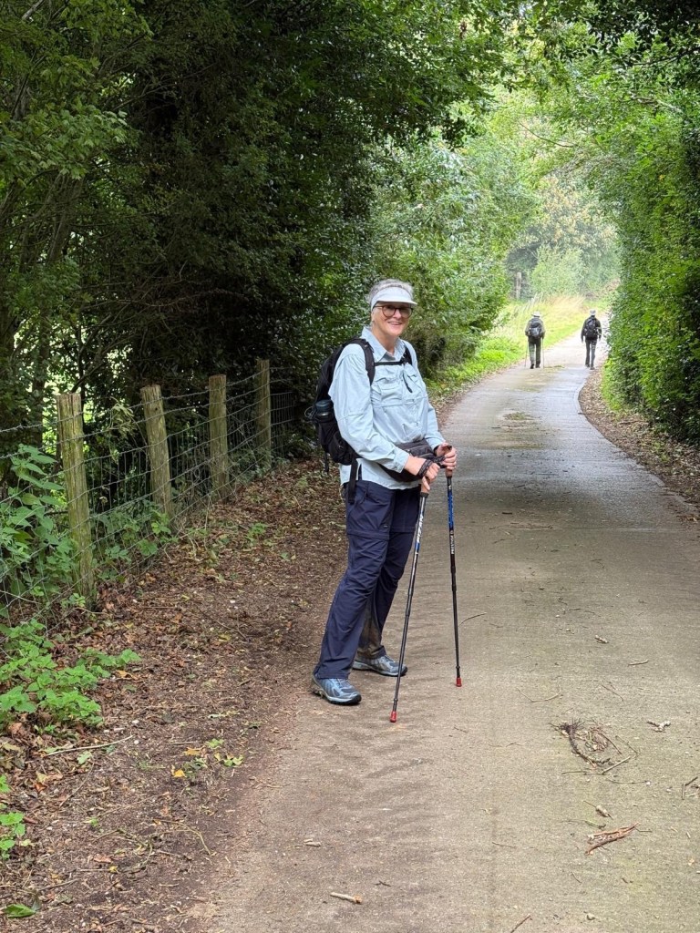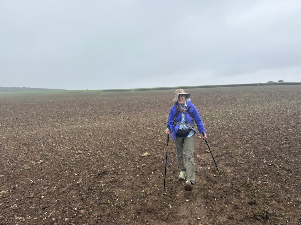 At St Andrew’s Church, ShepherdswellFlint embedded in the walls. We’ve seen this on a number of old buildings Another Via info signYou’ve got to love a place that leaves fresh water and dog biscuits out, and is open, and has a stamp for our credentials!Some interesting and varied terrain todayMonumenta Romana: This artwork is a contemporary folly that takes the form of a cupola, designed to complement the nearby Belvedere at Waldershare Park (thanks Google)Nora and Ralph, wire haired Hungarian Vizslas with Jo, their human (off screen)Waldershare House, an historic country house that has now been turned into apartments Bill, a Patterdale Terrier, with his human, MartinPiddle Wood, as identified in the above sign All Saints, Waldershare… open and with another stamp 👏🏼👏🏼👏🏼This is the closest thing we’ve seen to any wildlife! (Except a squirrel that ran past us later in the day)The sign reads “Burrows in this fallen tree are homes to Rabbits a fox and insects”This enormous yew tree is said to be over 1000 years old We were directed through this paddock and not to take the private trackWith the cattleAnd a skittish calf or twoLovely thatched roof and cool vintage MG at this place Hedgerow gap between paddocksWindy!The Via Francigena from Canterbury to Dover follows the same route as part of the North Downs Way which runs from Farnham to Dover (246km/153 miles)Houston, we have a problem!!!A friendly bullA Shaggy Inkcap, also commonly referred to as Lawyer’s Wig or Shaggy Mane (thanks Google)A Birch Polypore fungus, also known as Fomitopsis betulina or birch bracket (thanks Google)Good foraging today… lots of ripe blackberries as well as apples Into Dover and these waymarkers appeared embedded in the pavementsThe blue sign reads: GERTRUDE TOLAND MD. FRCS 1901-1985 LIVED AND PRACTISED AT CLYDE HOUSE SURGEON AT BUCKLAND HOSPITAL SAVED MANY LIVES FROM DUNKIRK EVACUATION & BATTLE OF BRITAINDover Castle at the end of Castle Street At St Mary’s Church with James who very helpfully retrieved the stamp for our credentialsAt the Elephant & Hind Bar with Sam. A delicious meal prepared by Matthew… great fish & chips and fabulous service & advice from Sam .Into the museum next door… Lynn reckons this is an early female pilgrim… there’s still not many loos along the way!The Channel Swimming Association’s trophy cabinet. Some highlights from the information boards: YOUNGEST SWIMMER TO CROSS THE CHANNEL: 1988 Thomas Gregory aged 11 years, 336 days. Since 1994 the rules forbid solo attempts by swimmers under the age of 16. OLDEST PERSON TO SWIM ACROSS THE CHANNEL: 2014 Otto Thaning at 73 years 177 days.Sorry about the bad photography!An Aussie! This Bronze Age boat was discovered in Dover in 1992 and dates from 1550BC It measures 9.5 x 2.4 metres (31 x 8 ft) and is made from four oak planks held together with oak wedges and yew stitches. The seams and stitch holes are packed with moss and beeswax. The boat is as discovered with no added or replica pieces. Buildings on Dover’s foreshore promenadeViews of the famous white cliffsWalking back through town through an installation… as if there wasn’t enough mizzle today!On the bus (top deck, front row) heading home to CanterburyDinner in the hotel lounge… sandwiches, fruit, yoghurt, trail mix, chocolate mousse… it was a feast!