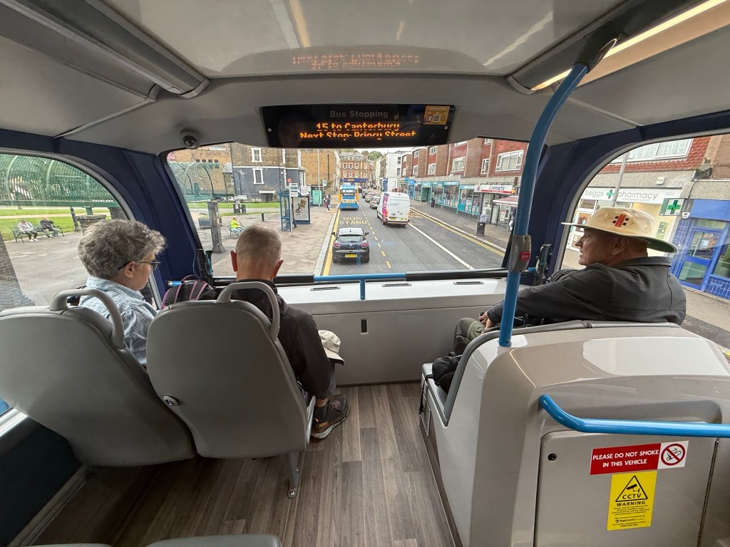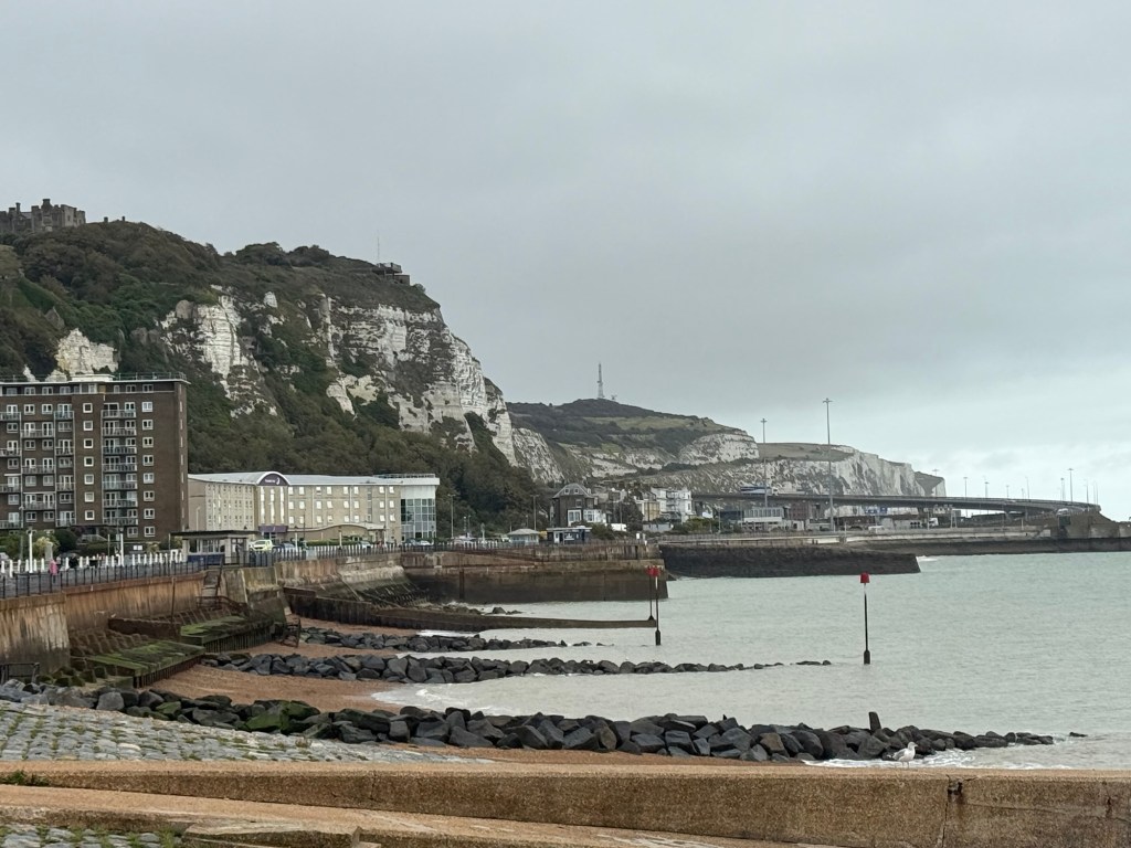 Similar weather today as we made our way from Shepherdswell to Dover. After a false start because the trains weren’t running this morning, we headed to the bus station… but there are no buses to Shepherdswell. Into a taxi and we set off at last, and ended up paying less than we did for train tickets yesterday!