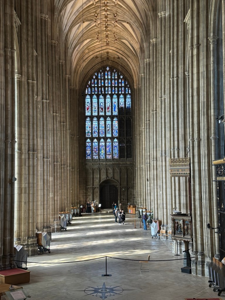 We made our routine trip to the laundromat after breakfast, then headed into Canterbury for some sightseeing. A real highlight of the day was meeting Torin, the Pilgrim Officer at the Cathedral. He shared lots of interesting insights and made us all feel a bit special about our pilgrimages. Lynn and I then treated ourselves to an hour of cat smooching at Canterbury Tails (a cat cafe) before a rest this afternoon then dinner at Pinocchios again for our last night here.