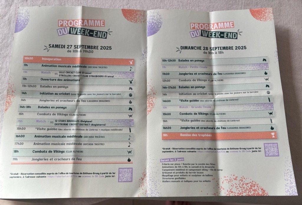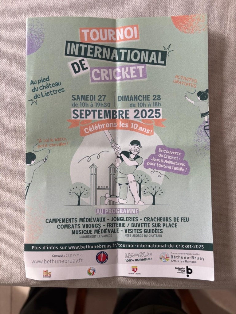 The event celebrates the world’s oldest authenticated testimony to cricket, found in a letter of grievances addressed to King Louis XI. It mentions a death during a cricket match on October 25, 1478, in the grounds of the Château de Liettres.
