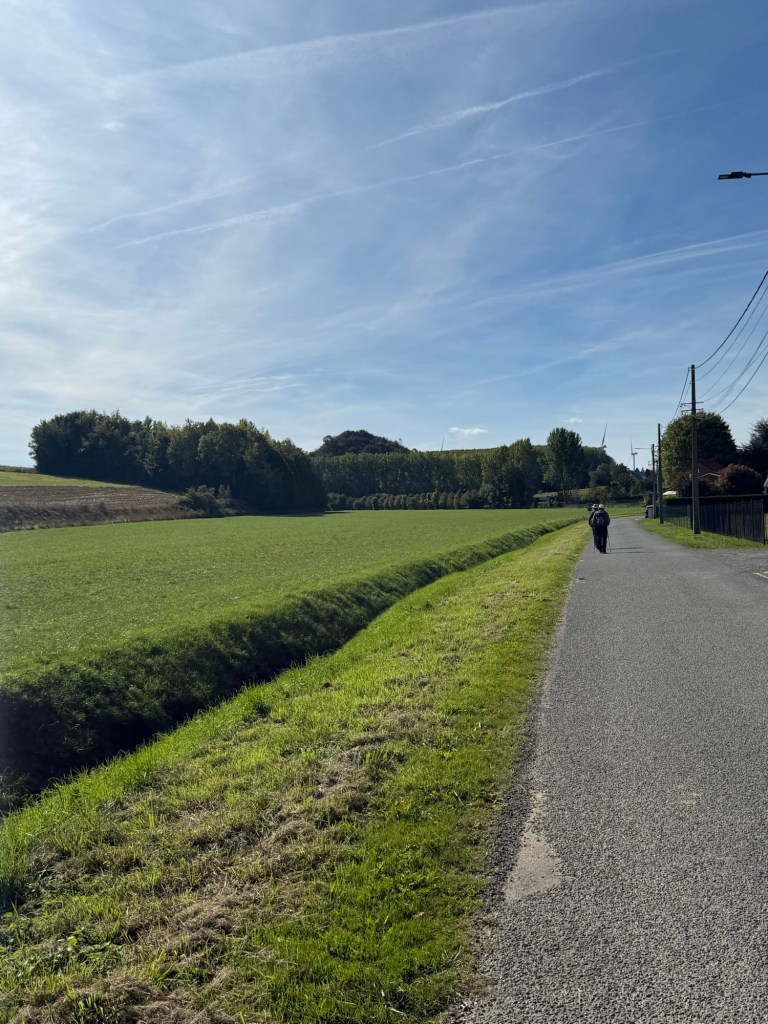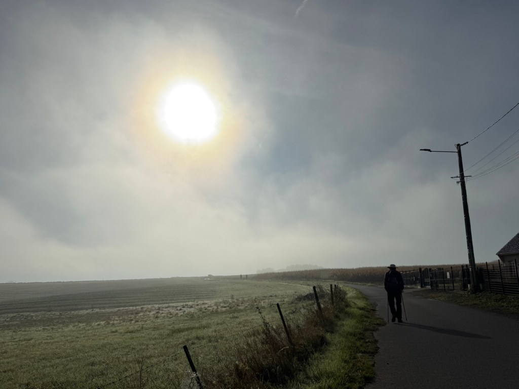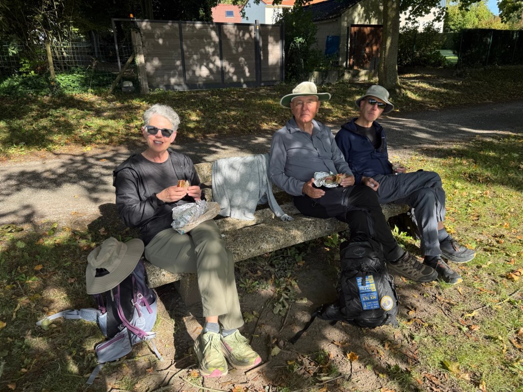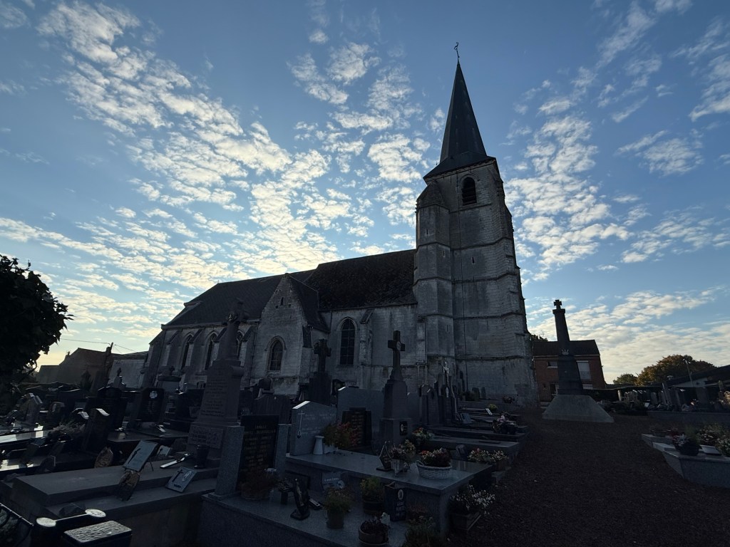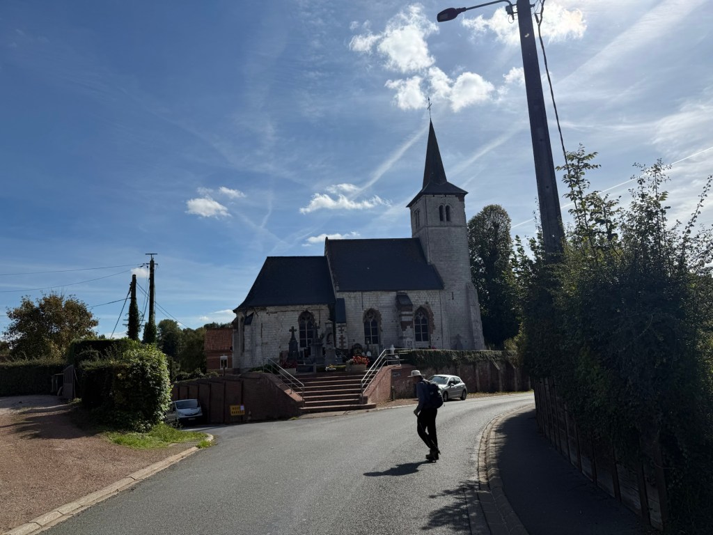 What started out as a nippy, misty morning blossomed into a rather warm day. The scenery remained beautiful, with fields, woods and villages. The highlight today was a “Tournoi International de Cricket” (International Cricket Tournament) in Liettres. Also notable were the dozens of shooters out hunting pheasants? Their bright orange fluoro clothes seemed to be everywhere! They included a number of young people… I doubt some of them are in their teens.