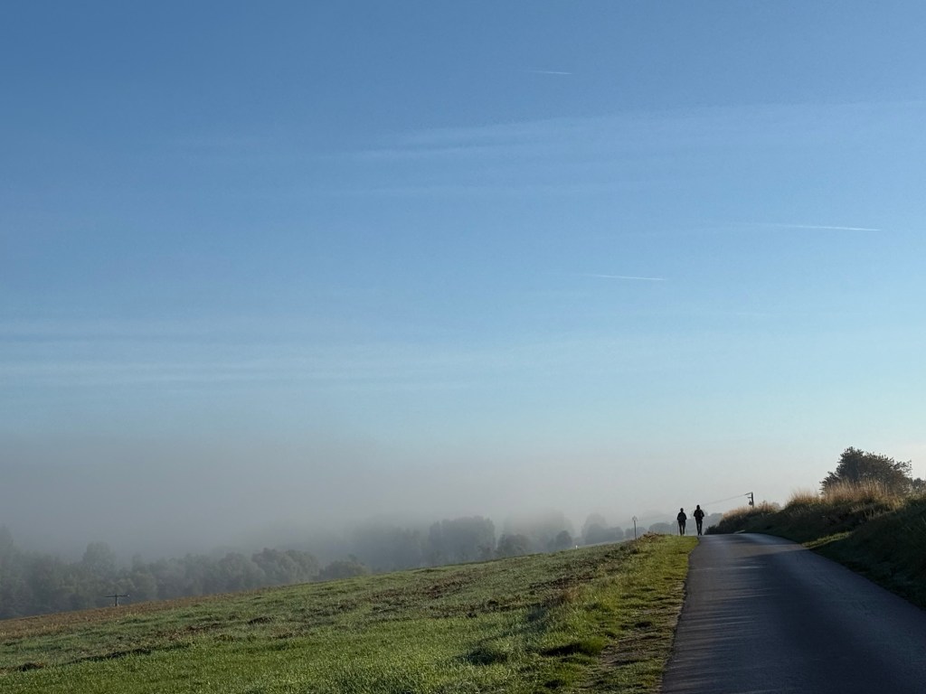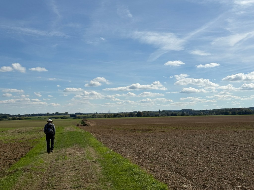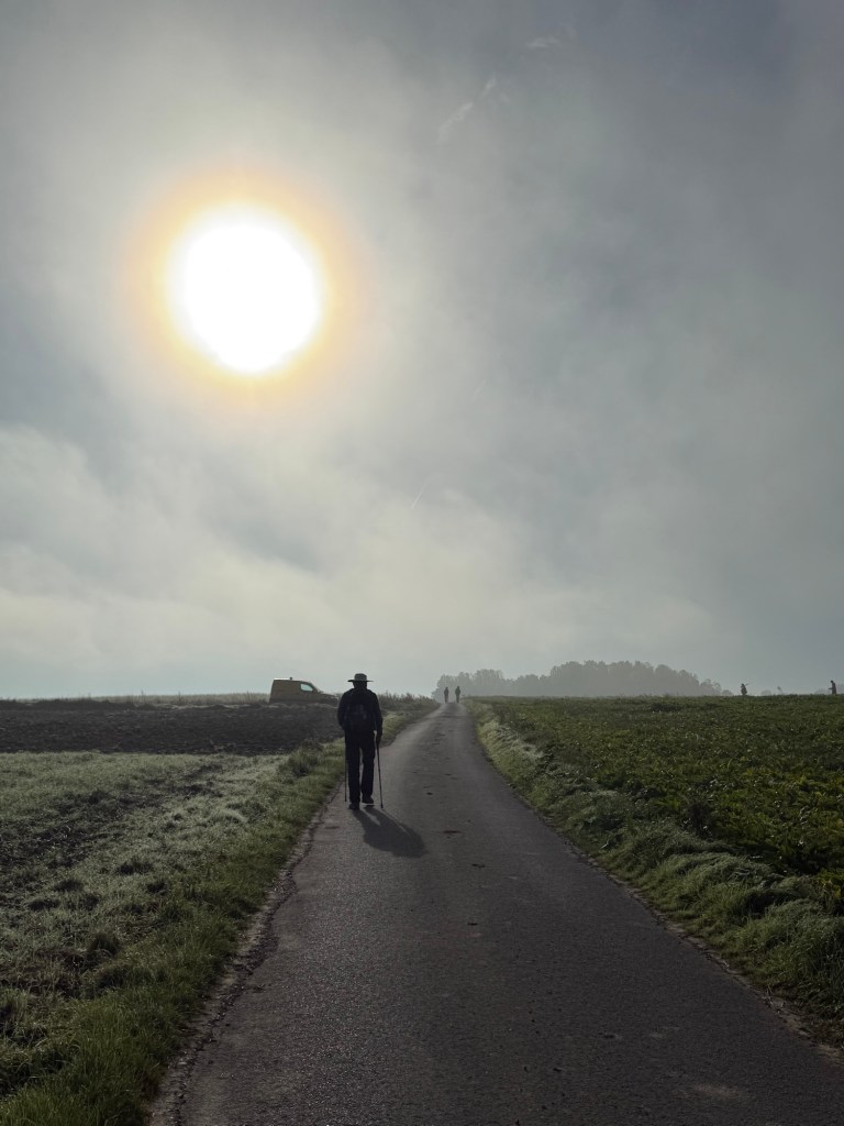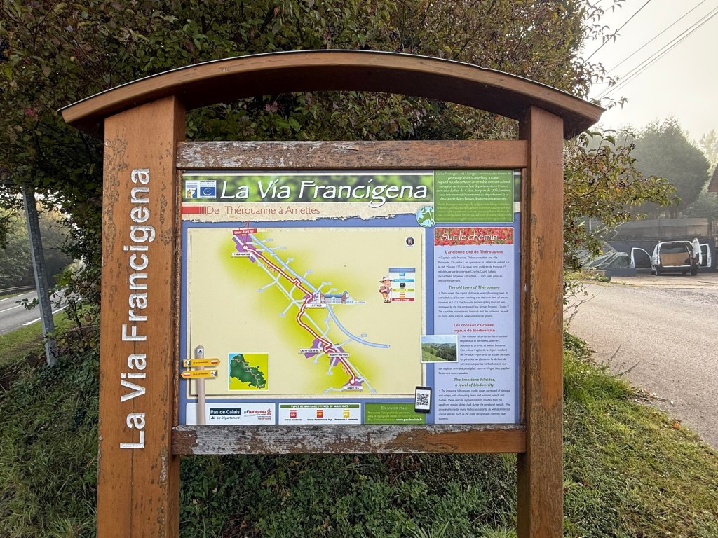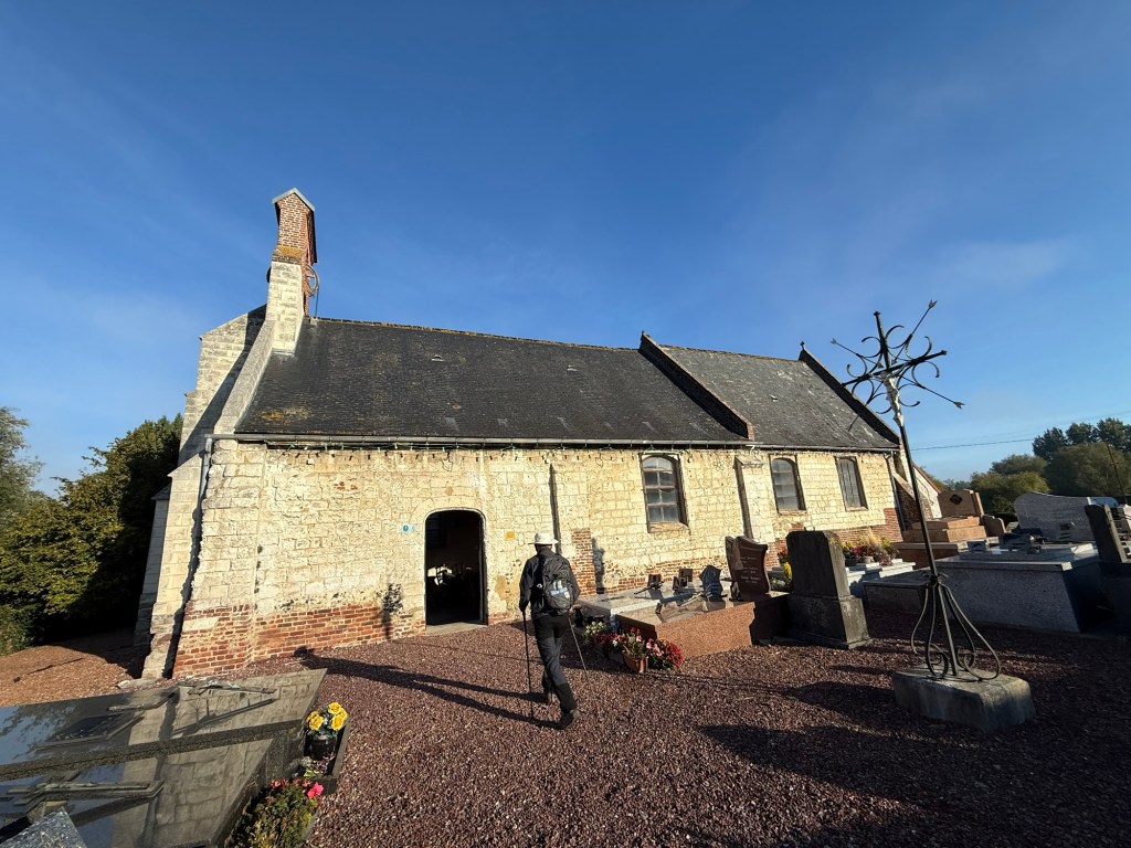 What started out as a nippy, misty morning blossomed into a rather warm day. The scenery remained beautiful, with fields, woods and villages. The highlight today was a “Tournoi International de Cricket” (International Cricket Tournament) in Liettres. Also notable were the dozens of shooters out hunting pheasants? Their bright orange fluoro clothes seemed to be everywhere! They included a number of young people… I doubt some of them are in their teens.