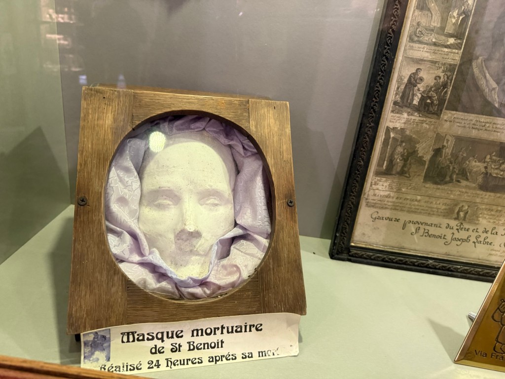 From our guidebook: This farming village’s most famous son is Benedict Joseph Labre (1748-1783), known as Saint Benoît, who at 16 took up the life of a mendicant pilgrim and visited shrines across Europe. In his last years in Rome he lived as a homeless man in the Colosseum, where his devotion was noted by locals who declared him a saint at his death. He is buried at the Santa Maria ai Monti church in Rome where he died, and his birth home is located here just below the church. He was canonized in 1881 and is patron saint of homeless people.