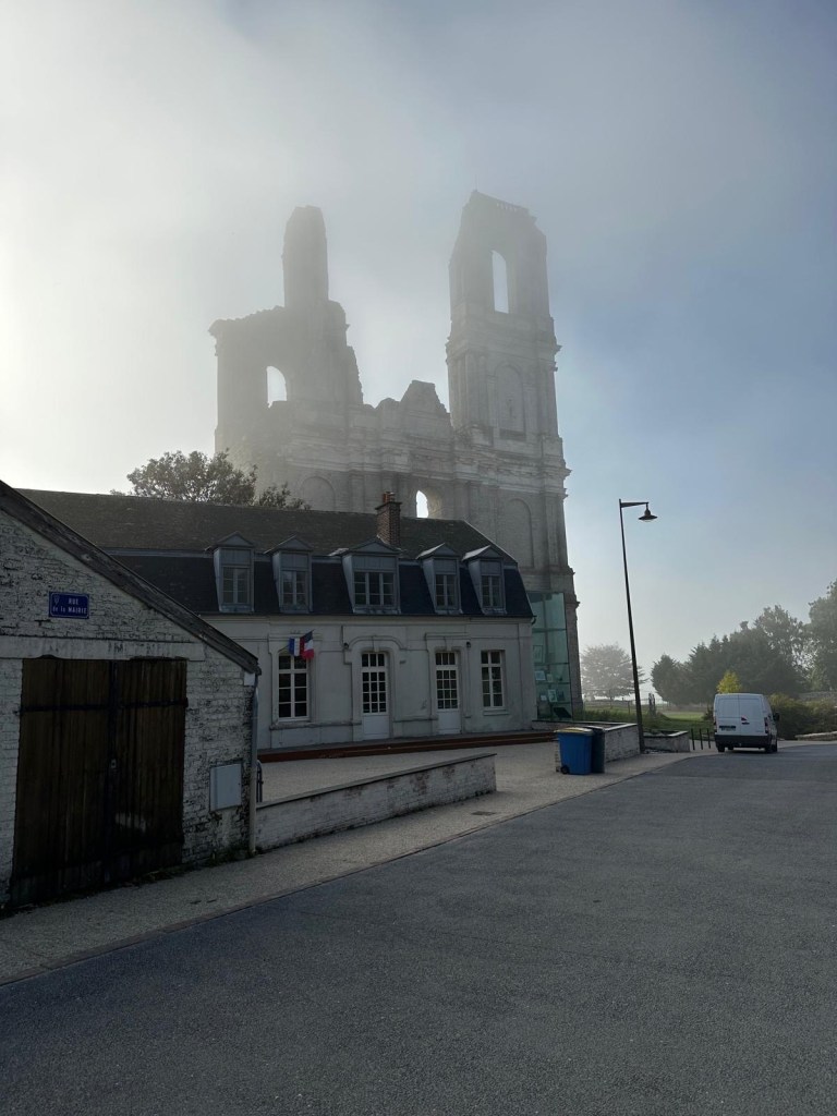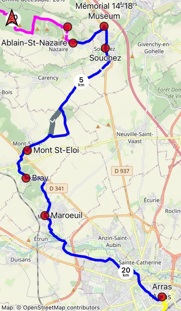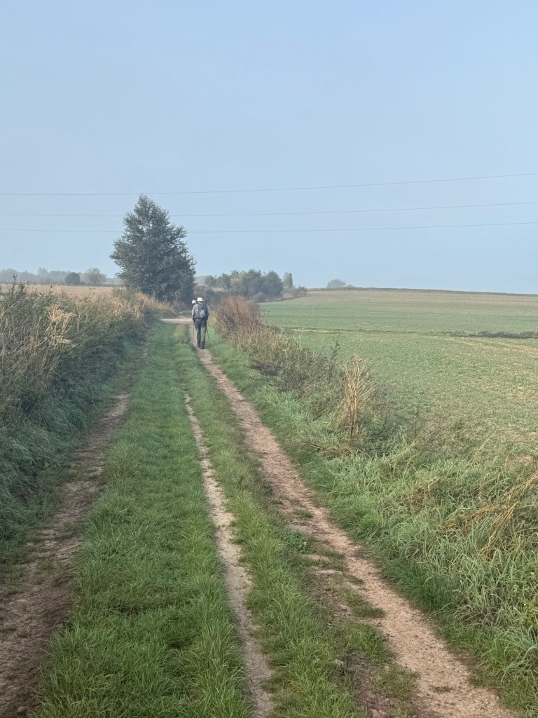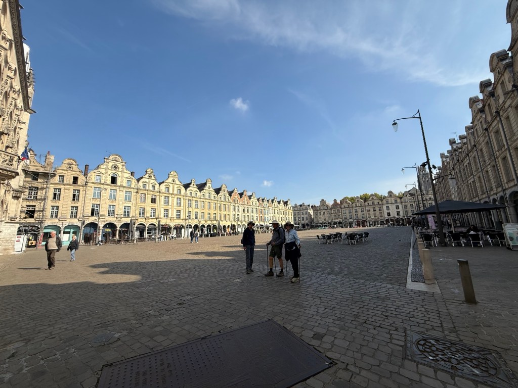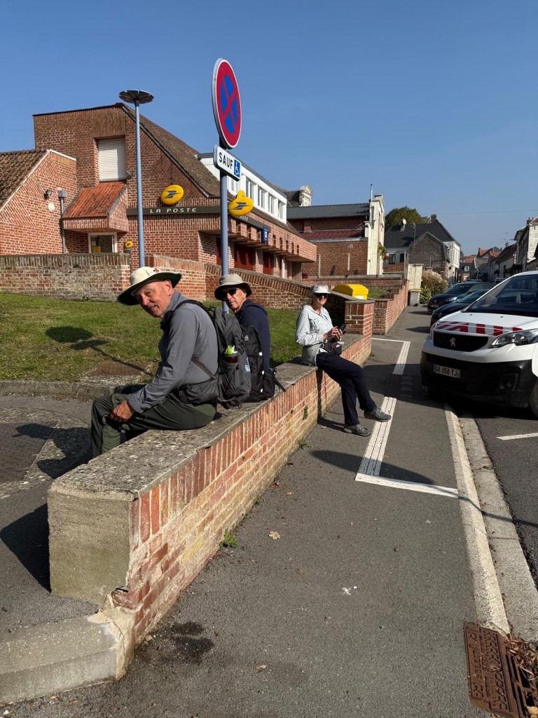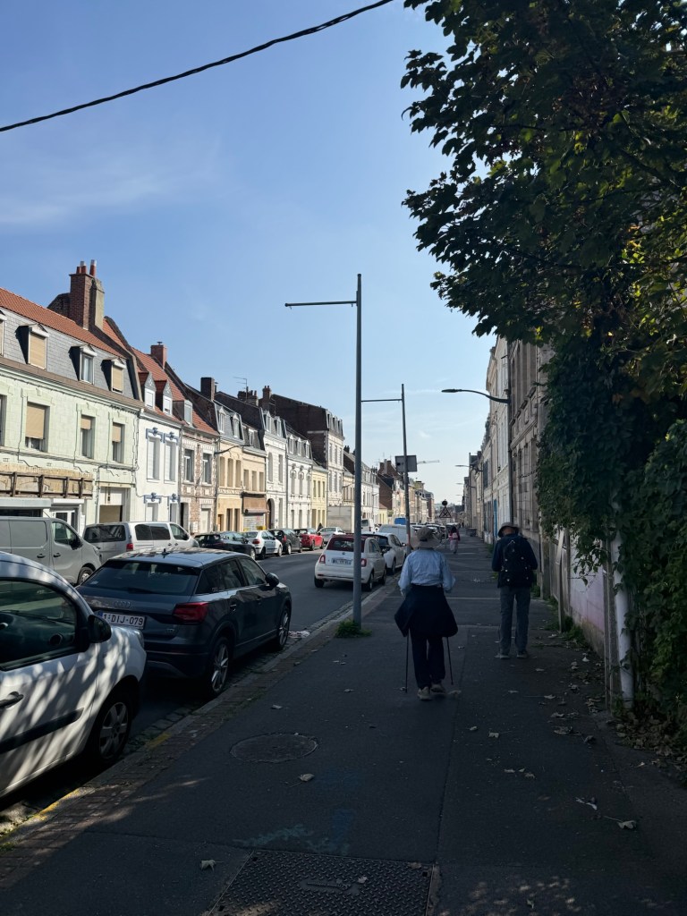 Another day of glorious weather and good walking. It was a day of transition from the farming fields to the very urban Arras city (population 41,400). That said, the walk in was mostly on green belts with just the last kilometre or so in very built up streets. Camino signs emerged today, accompanying many of our Via waymarkers. We are intrigued … we haven’t been able to identify which Camino they relate to.