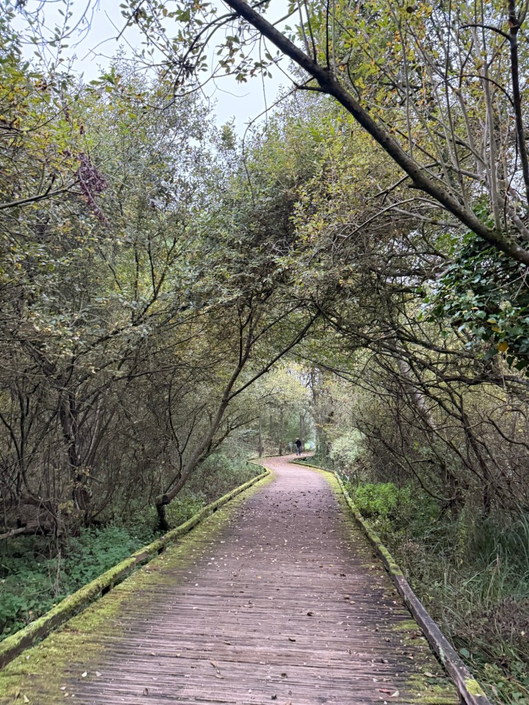 Our open fire last night…Route direction ➡️; our direction ➡️Lovely boardwalk over muddy lakeside areasRuins of Vauclair Abbey