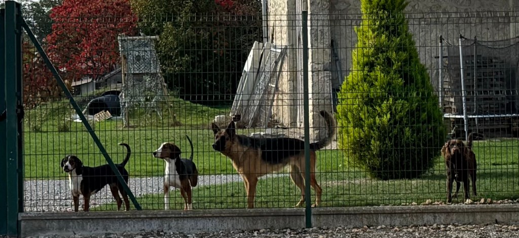 Russula paludosaAccording to Google… either edible honey mushrooms or their extremely poisonous lookalike, the deadly galerina. Erin Patterson eat your heart out!As we entered Corbeny, our first formal vineyardWith cellar door (note the large faux champagne bottle on the left).Very pretty post officeSt Mark’s Gary made a new mate at the Tabac (cafe/bar)Airfield in the middle of a paddock nearing JuvincourtFirst glimpses of Reims on the horizon?White and purple flowers… no idea, but prettyA very busy free-range poultry farm in JuvincourtThese water bladders are everywhere… in case of fire Four very vocal dogs… one tripod A huge slide in a domestic back yard as we left Juvincourt The “vastest” paddocks we’ve seen … they stretch as far as the eye can see in every direction Unpleasant underfoot for a few kilometres late in the walkTwo crops Lunch on a cornerSt Hilaire Church, Berry-au-BacA beautifully maintained Simca outside the Mairie