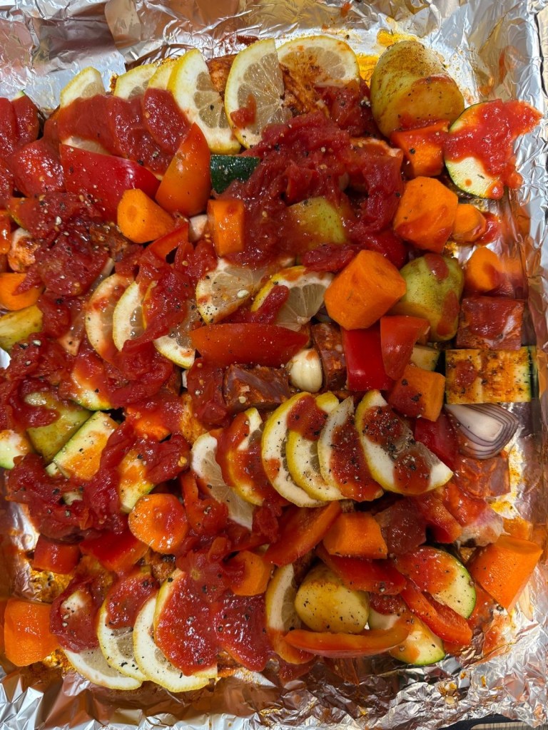 At home tonight, preparing the last supper of this trip… Spanish Chicken, a favourite over past weeks.