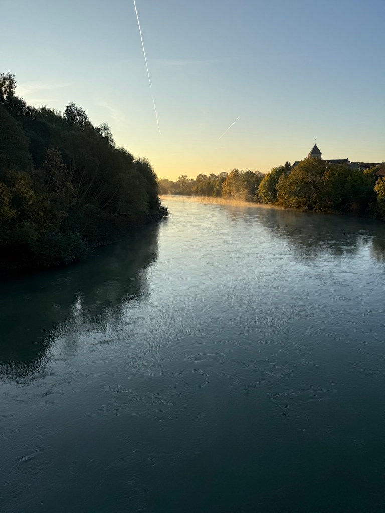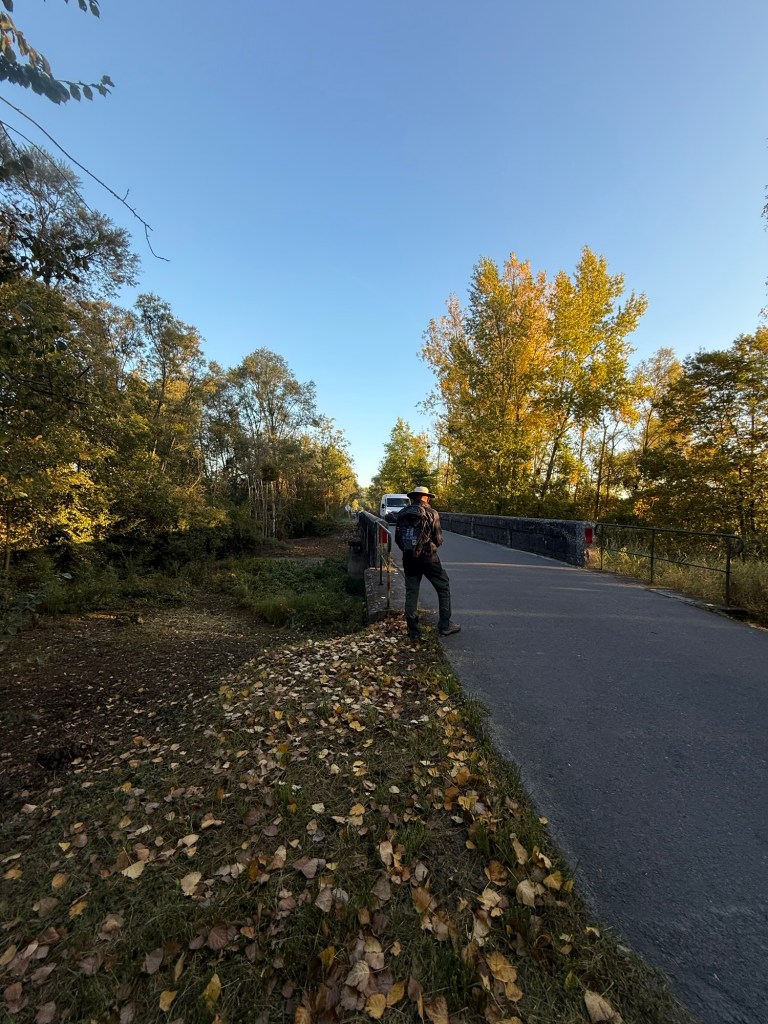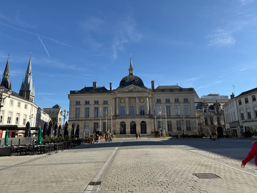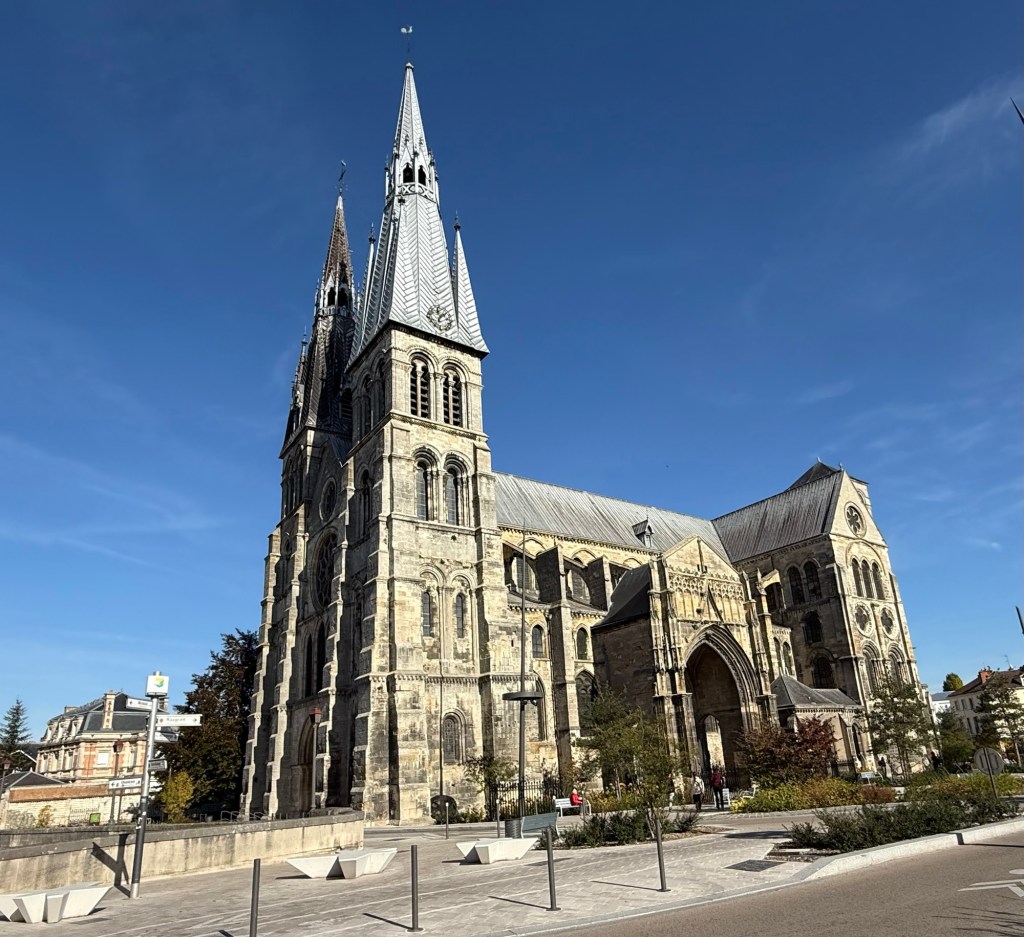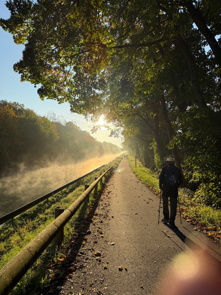Our last day of hiking! After a chilly start (6C/43F) it was a beautiful day with blue skies, gentle breezes and easy walking. Because we had to return the cars yesterday our initial plan was to get an Uber to our starting point in Conde sur Marne… but there were no Ubers available. Plan B: hike to the Via, avoiding most of the main roads by following the tracks. This would bring us out about 6km into the route… but there was a big hunting party on the tracks and they advised us to stay on the roads. Plan C: we hiked the 2.5km of roads to join the Via near Juvigny, then continue the Via along the Canal Latéral à la Marne into Châlons en Champagne for a total hike of about 12.5km/7.8m.