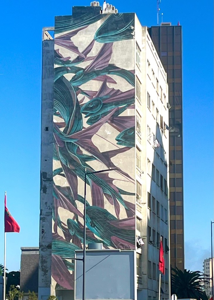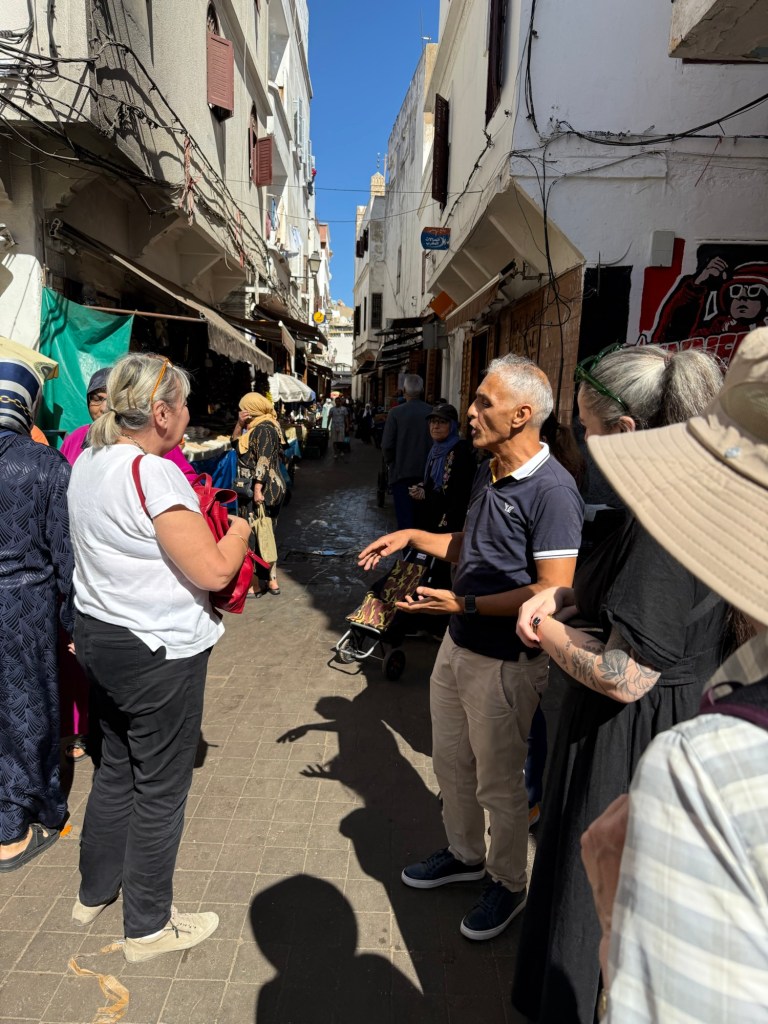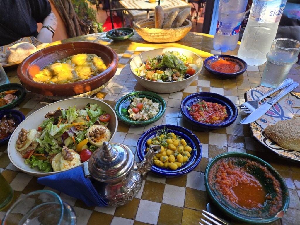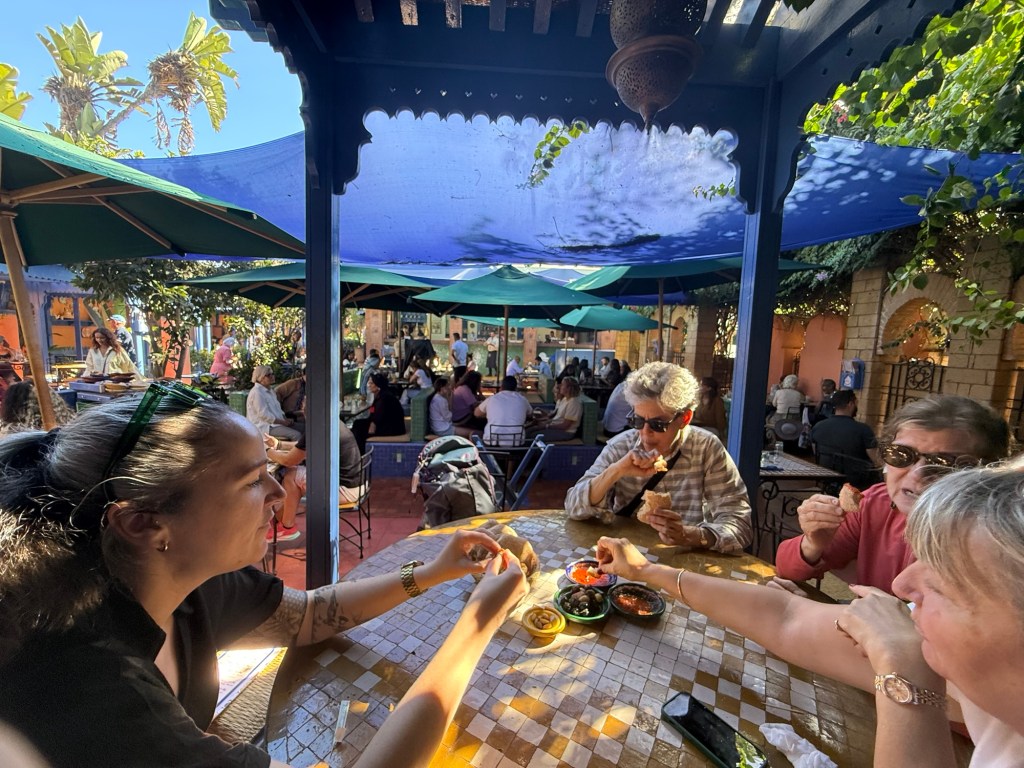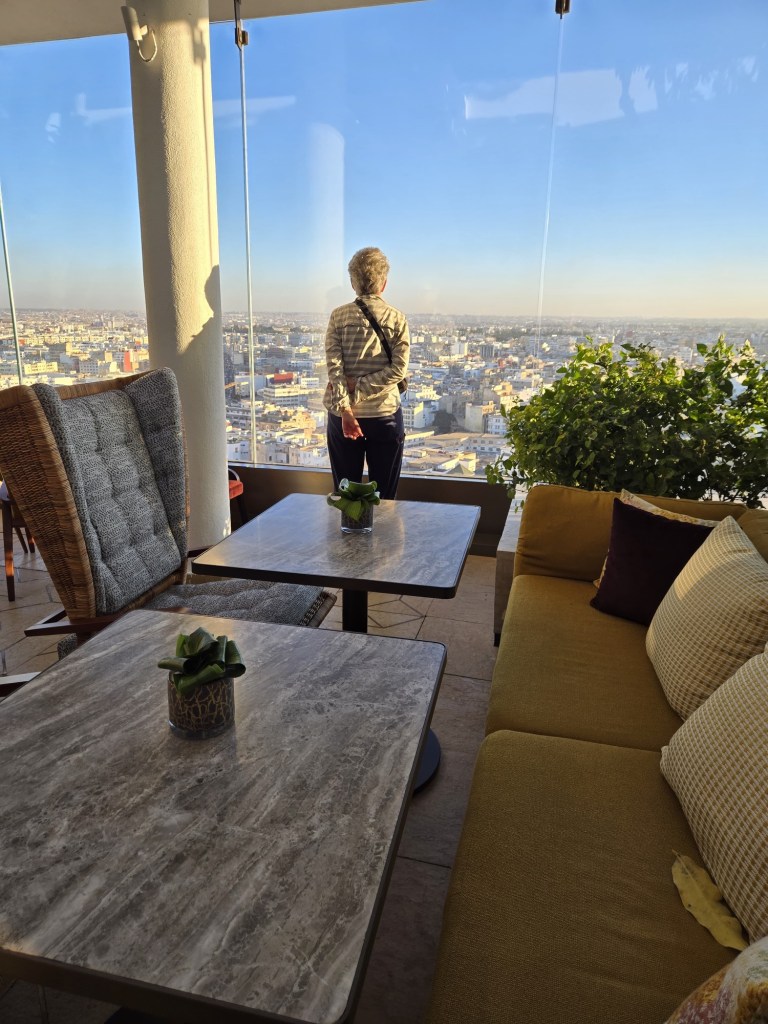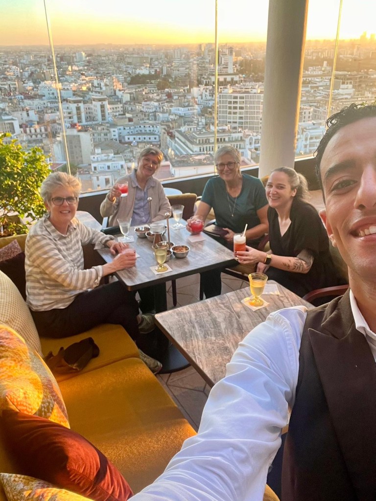 What a day! After a yummy breakfast including freshly cooked omelettes, strong coffee and gold leafed biscuits we headed off on a three hour tour. Gilligan’s Island fans will recognise the danger in this and we were indeed gone for longer… about 5 hours for the tour, then lunch at a restaurant in the casbah/medina/old town. After a short digestive walk home and a good cup of coffee at a cafe up the road, it was home for a very short feet up before the four of us headed back to Le Rooftop bar so Lynn and Loie could share the experience.