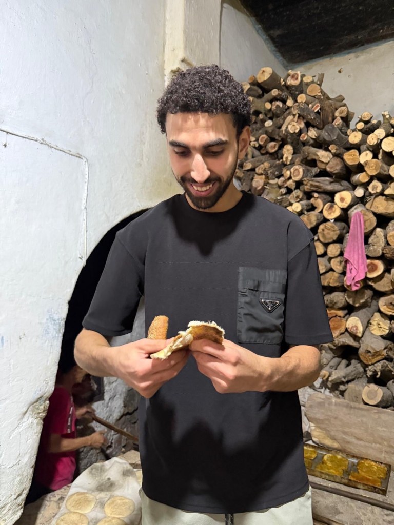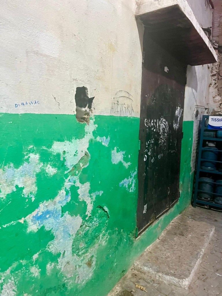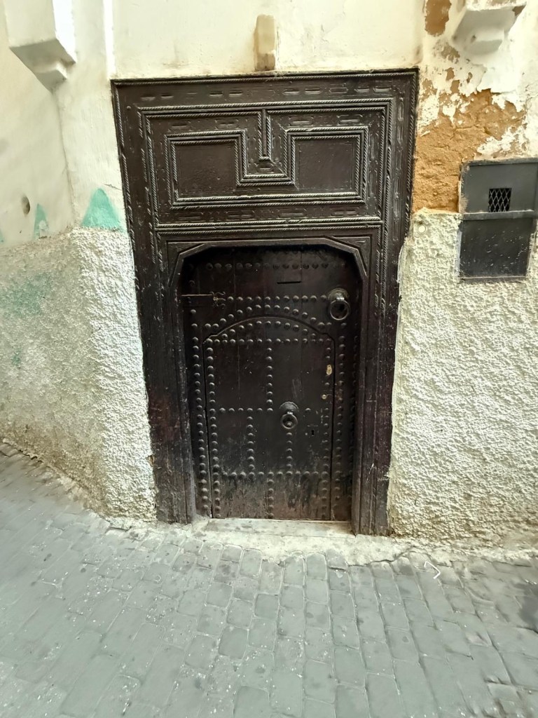 Both Youssef and Ahmed mentioned that it is important for Muslims to be modest and not showy about their wealth or status. That is why their houses are all simple on the outside, but inside they may be luxurious. Ahmed also explained that these door have two knockers and two doors. The smaller, lower one is for the family and when opened preserves the modesty as passers by can’t easily see inside. The larger, higher one is for guests and, if no men are around, flags to the women in the house that they may need to cover themselves before opening.