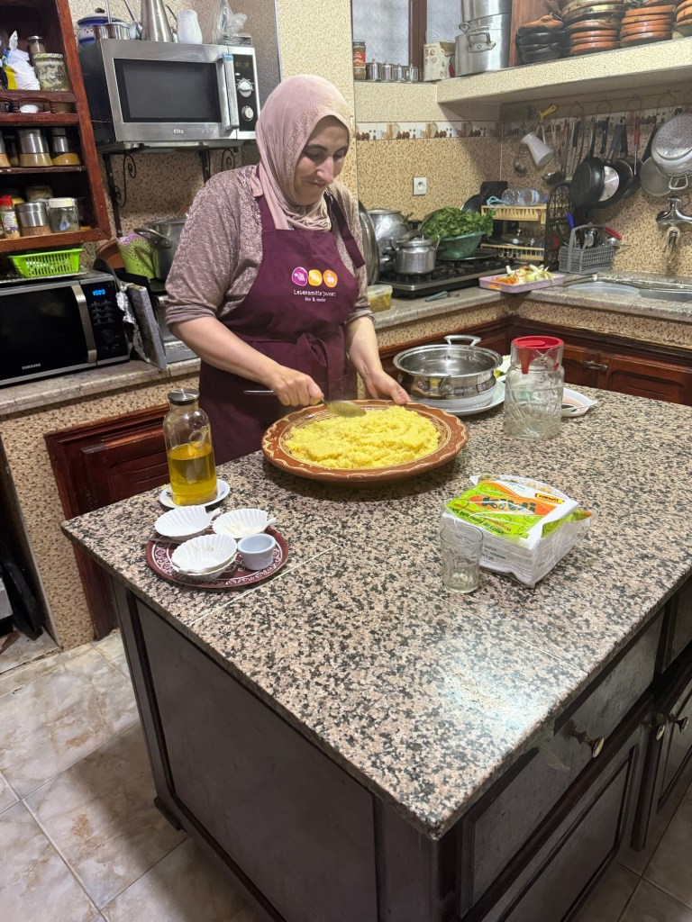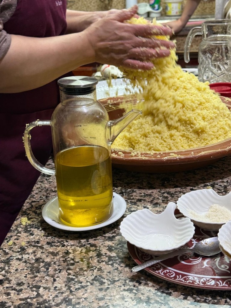 A quick rest in our rooms and then we joined Rashida in the kitchen to watch her prepare couscous properly