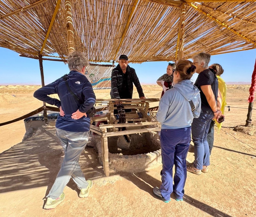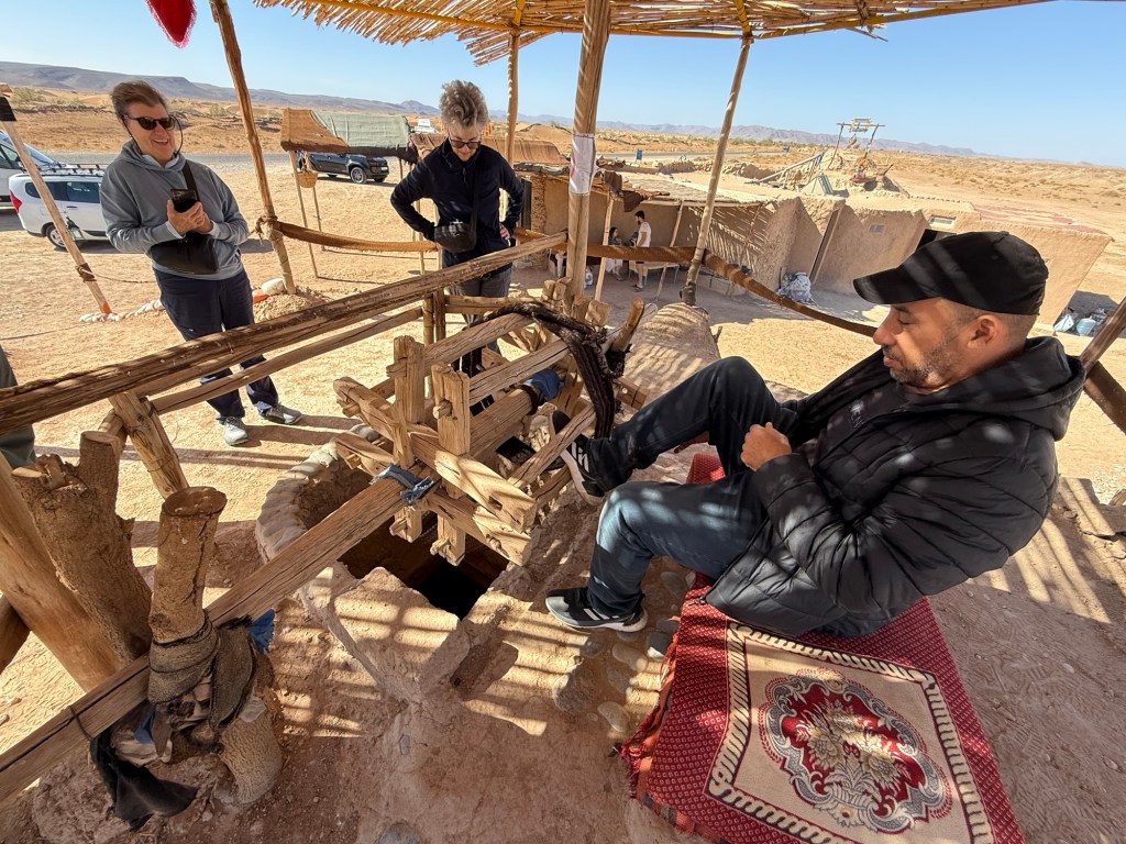 After dragging ourselves out of the showroom and away from more purchases, we headed west towards the M’Goun Valley. The next stop was an introduction to the ingenious khettara irrigation system that has for centuries been the most efficient and effective management of water resources in the arid regions of Morocco and is still used in Marrakech to this day.