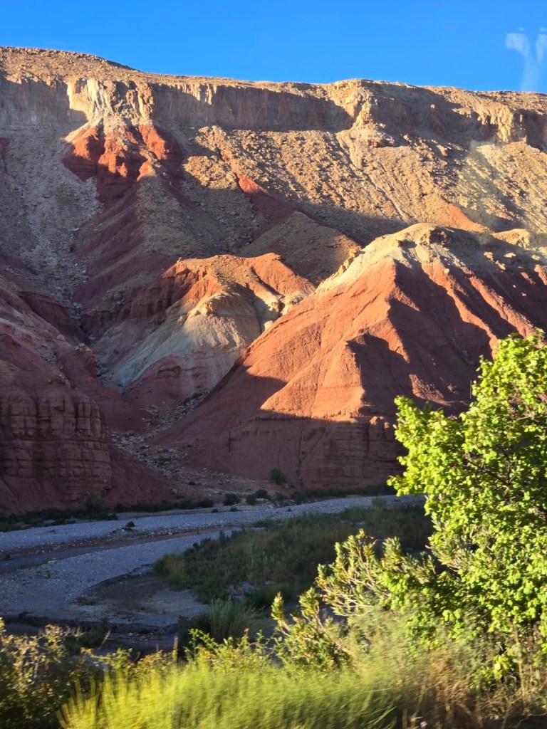 Today we headed west between the High Atlas Range and the AnteAtlas Range. I hadn’t realised the scale of the High Atlas Range… 1700km from the Atlantic almost to the Algerian border. The AnteAtlas range is older than the High Atlas, more volcanic with most of Morocco’s mining occurring g there. We passed the biggest silver mine in Africa, 8th biggest in the world.