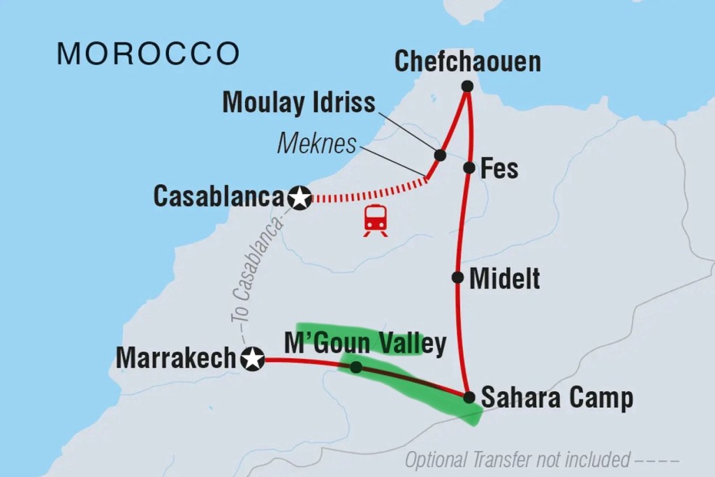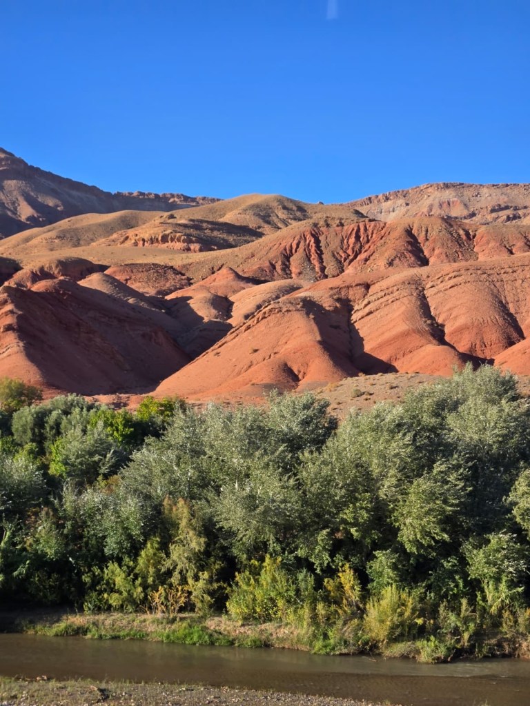 Youssef explained the meaning of the Moroccan flag to us as we travelled today … The green star represents the five pillars of Islam, and the red represents the blood of the ancestors and unity.