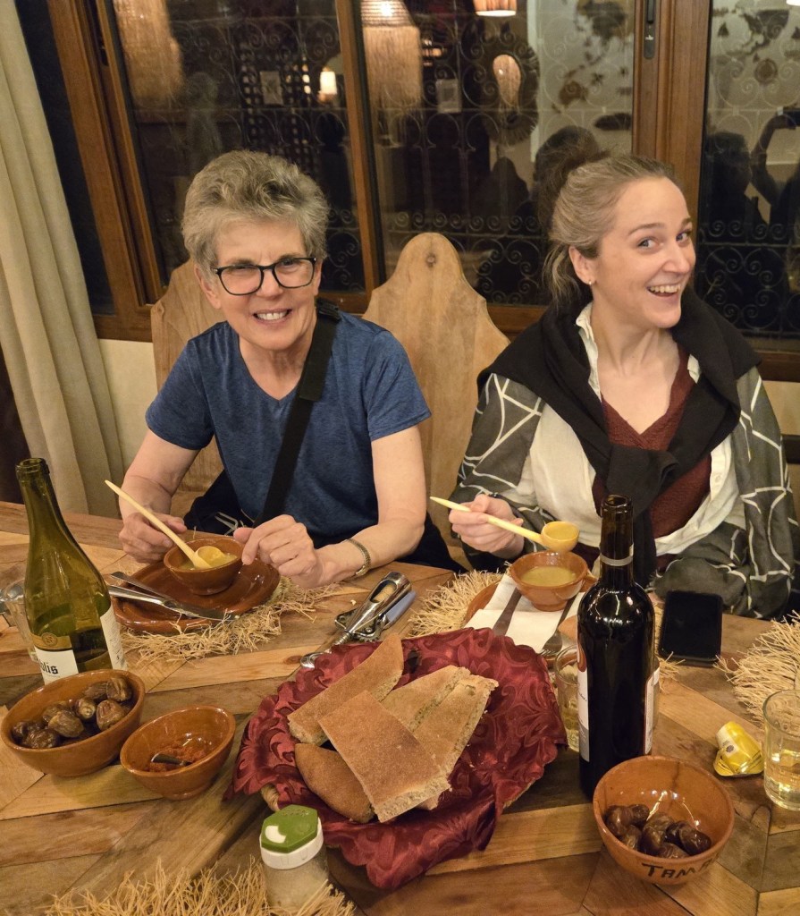 Heading further west, we stopped in Tinghir for lunch. Lynn orders black coffee with a little milk in the side… and she often ends up with coffee with a cup of hot milk as well. Today we got four of them.