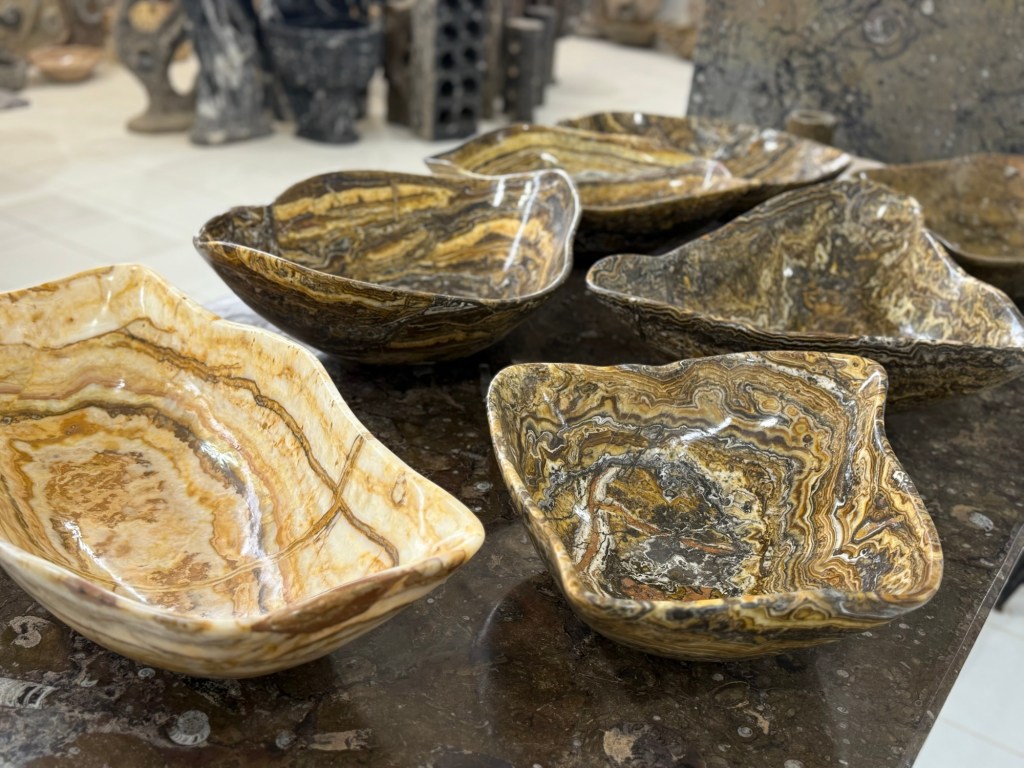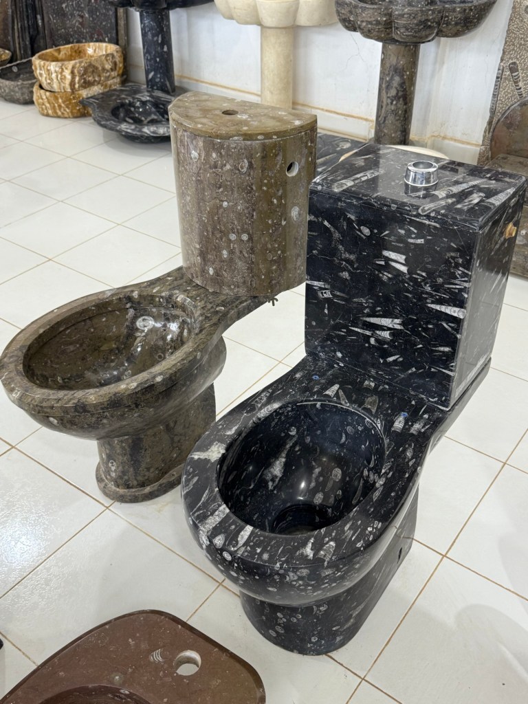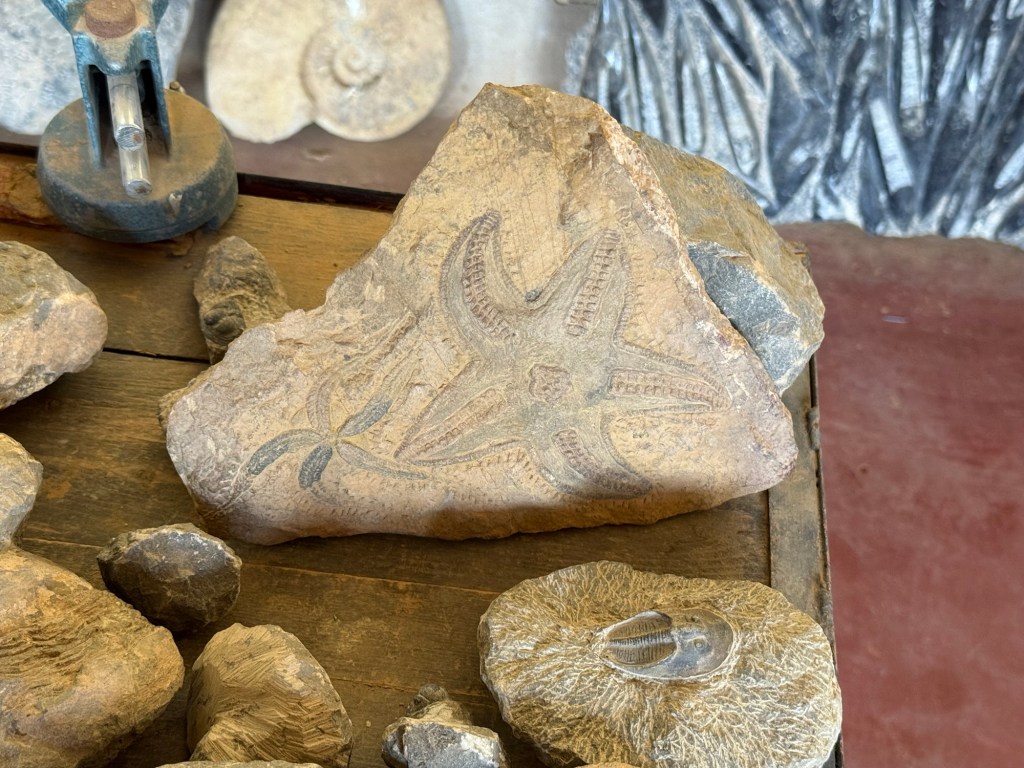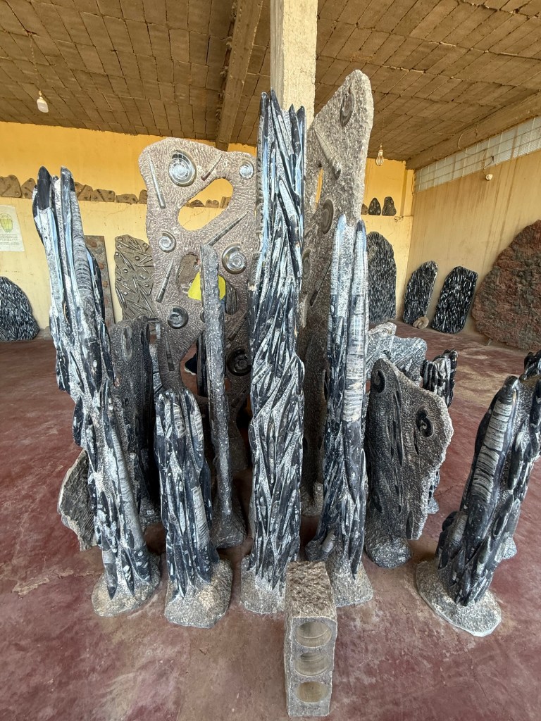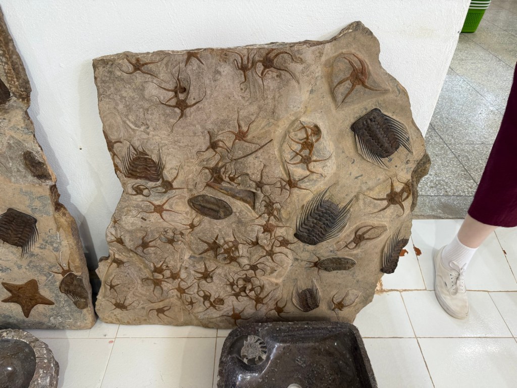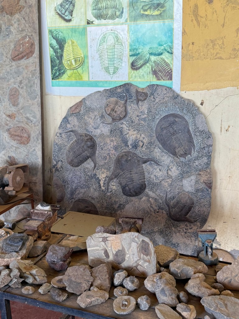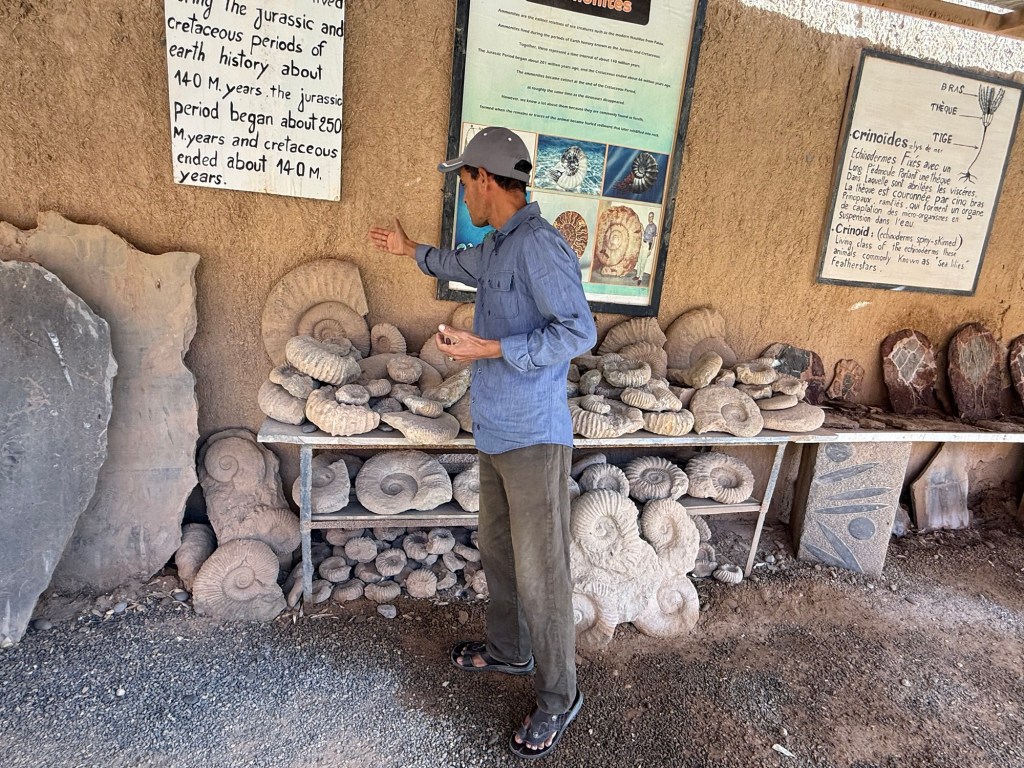 Onto a fascinating visit to a fossil showroom. The area is rich in fossils and there is a thriving industry in mining and presenting them for tourists. Hassan was our guide and he provided a great overview of the fossils and some of the minerals from the area. There were a range of fossils but the most prolific were: