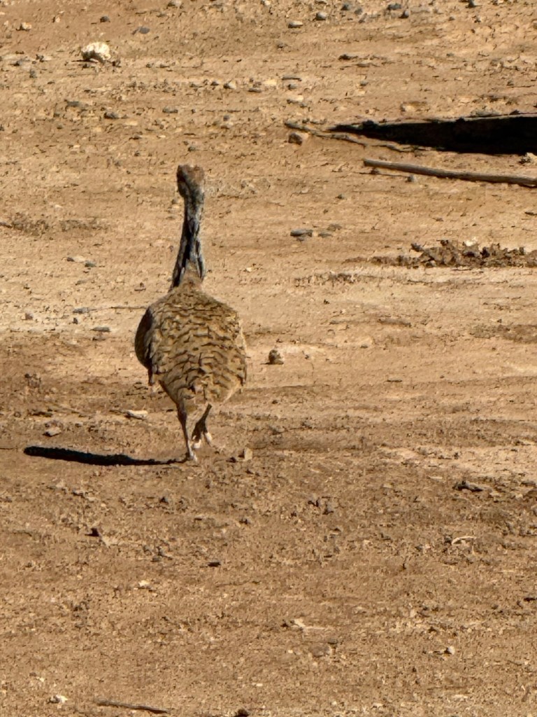 We were sitting having “welcome tea” when this guy walked out of the sand dunes … a houbara bustard, an endangered species.