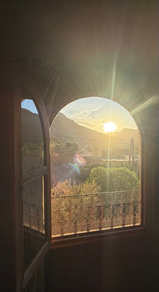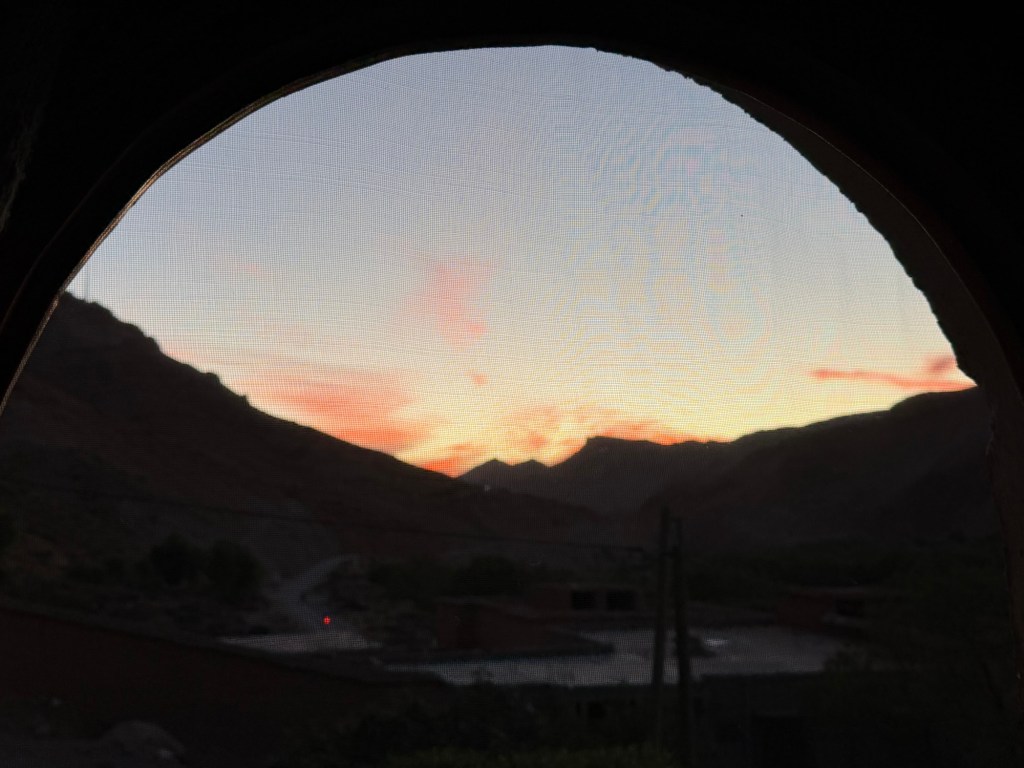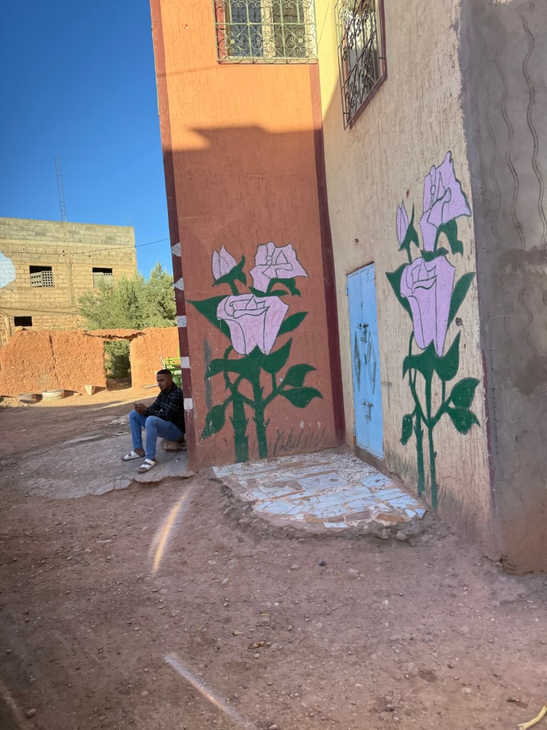 Our hotel is in a small town called Bou Tharar, about a 45min drive from Kalaat M’Gouna township… along a very windy road but with beautiful views.