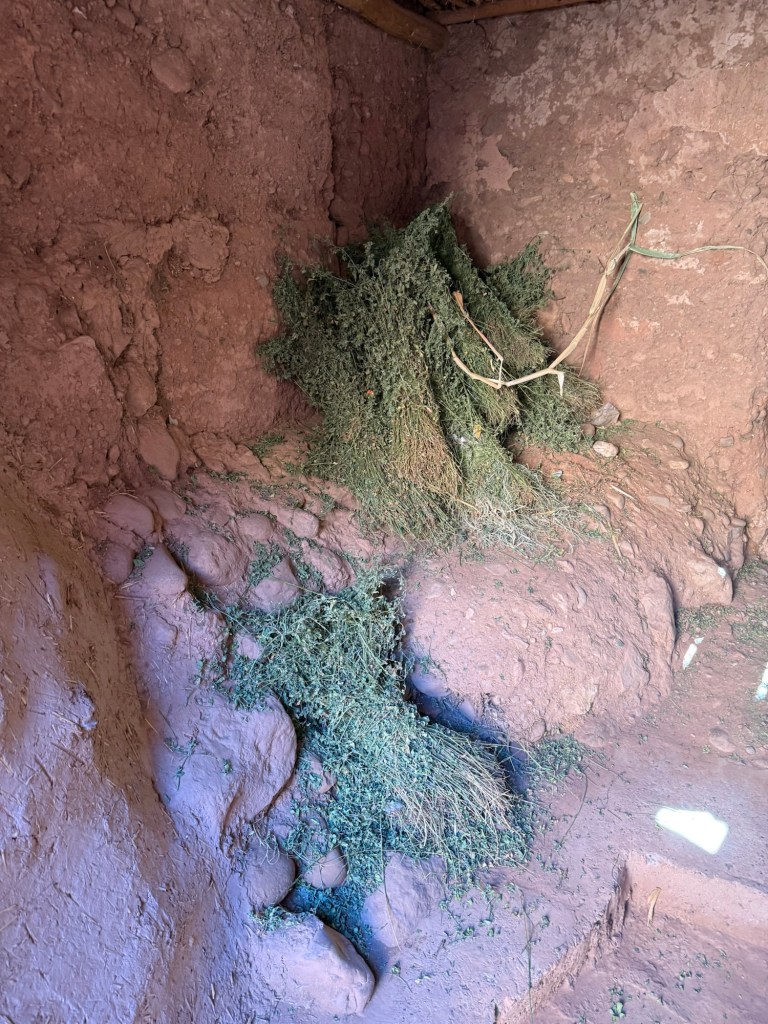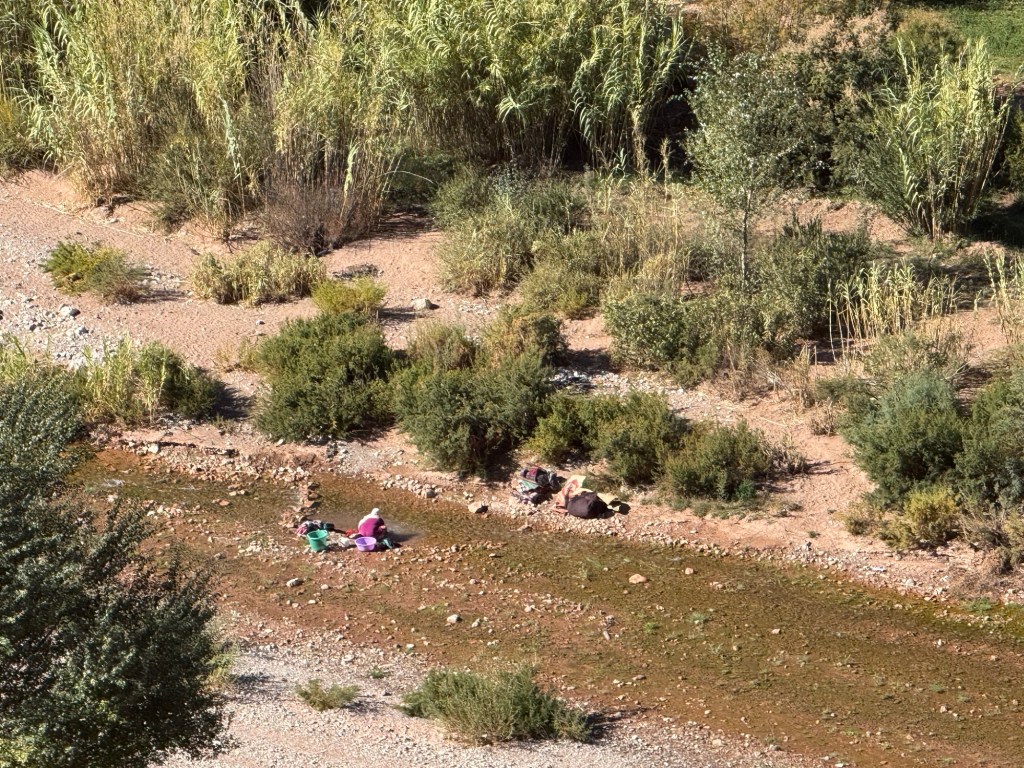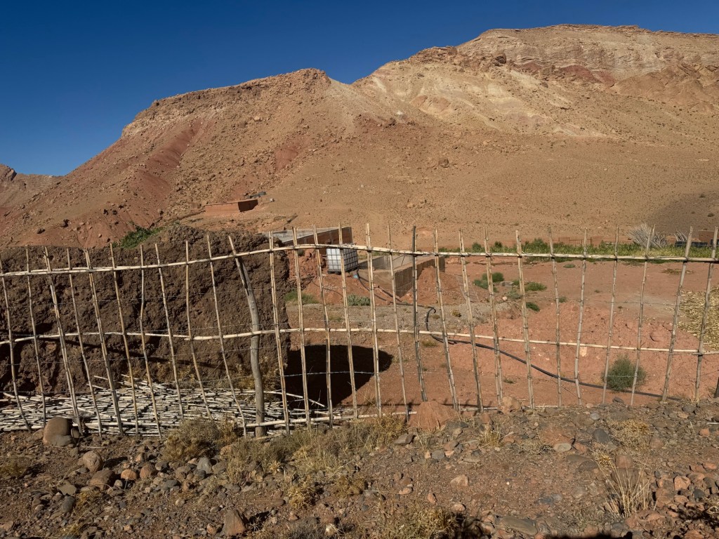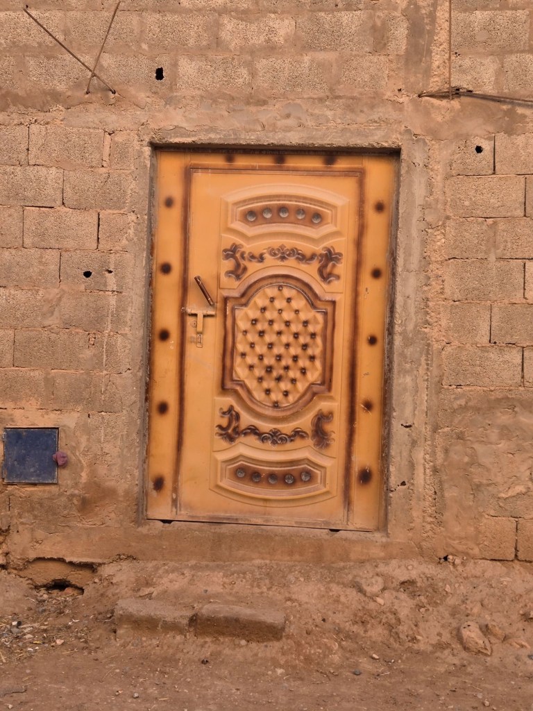 The primary schoolThe lettering on the sign… Arabic, Berber then FrenchDoor Caper bushHandmade adobe bricks, still used extensively Huge scarab! About 3”/7cm long!RosemaryAdobe constructionWashing being done below Bamboo fencingNatural curved formations Alfalfa is passage, drying for winter fodder for animalsBerber flag: blue sky, green land, yellow desert, free man symbol