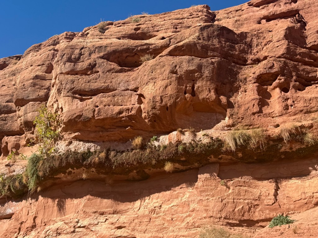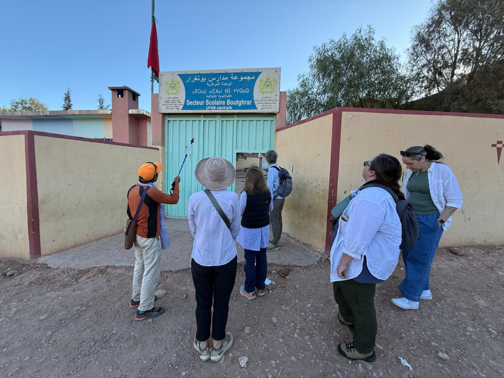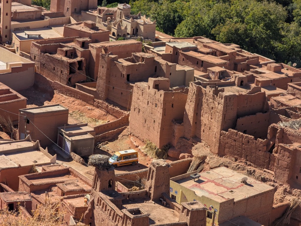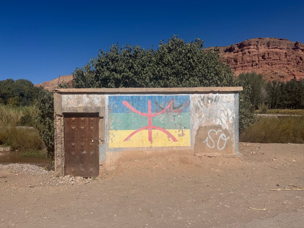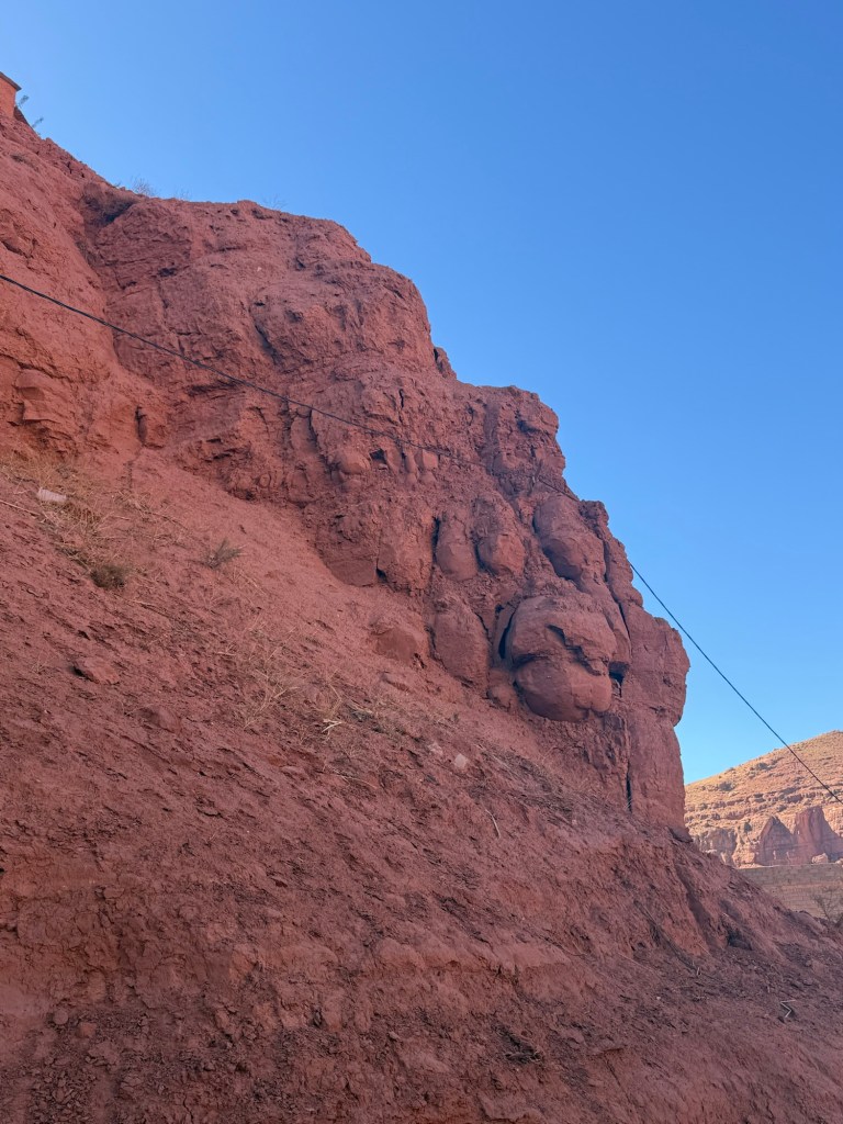 The primary schoolThe lettering on the sign… Arabic, Berber then FrenchDoor Caper bushHandmade adobe bricks, still used extensively Huge scarab! About 3”/7cm long!RosemaryAdobe constructionWashing being done below Bamboo fencingNatural curved formations Alfalfa is passage, drying for winter fodder for animalsBerber flag: blue sky, green land, yellow desert, free man symbol