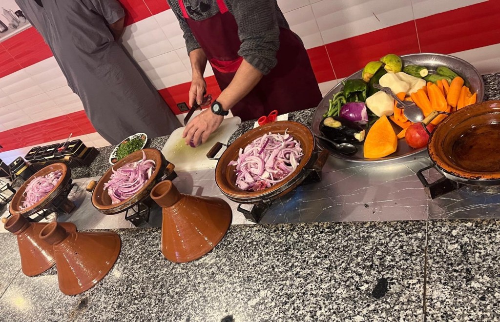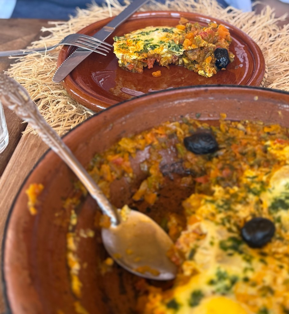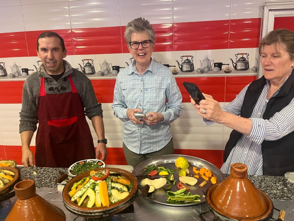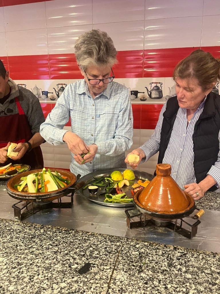 After a delicious lunch of Berber omelette and salads it was down time until the cooking class this evening. First, tajines with Hossain and then aghrom bread with Biya.