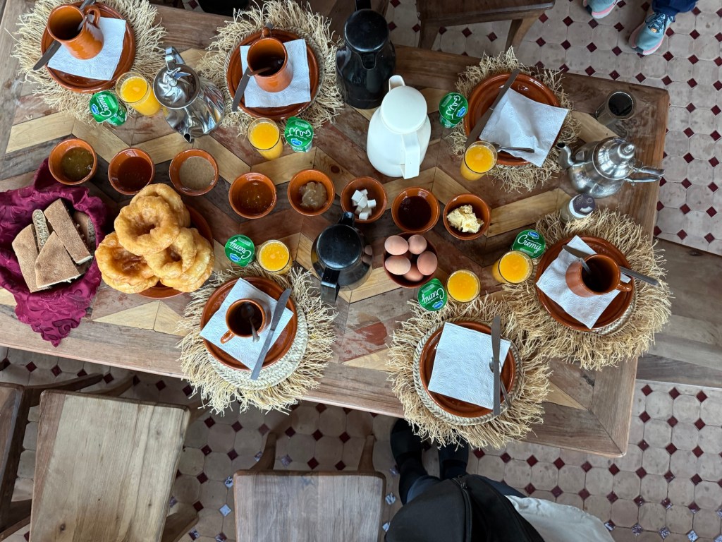 In the dining room/loungeLunch: Berber omelette and saladsBerber omelette (precursor to shakshuka)Hossain making lamb and vegetable tajines for dinnerHelping hands… and a vege versionMaking Aghrom bread with BiyaAfternoon tea with strong pennyroyal mint teaCooking the bread with BiyaThe final product that was served with dinner (all six)DinnerWith Chilean Alpaca wineThe moon tonight PS After extensive research we have decided this is the best brand of Moroccan chocolate